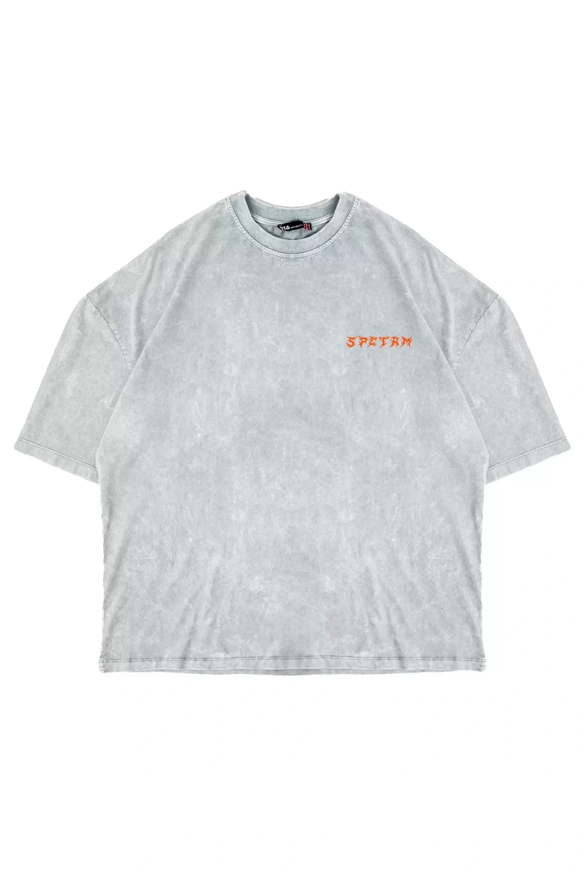 Yıkamalı Beyaz Dusk Baskılı Oversize Unisex Tshirt