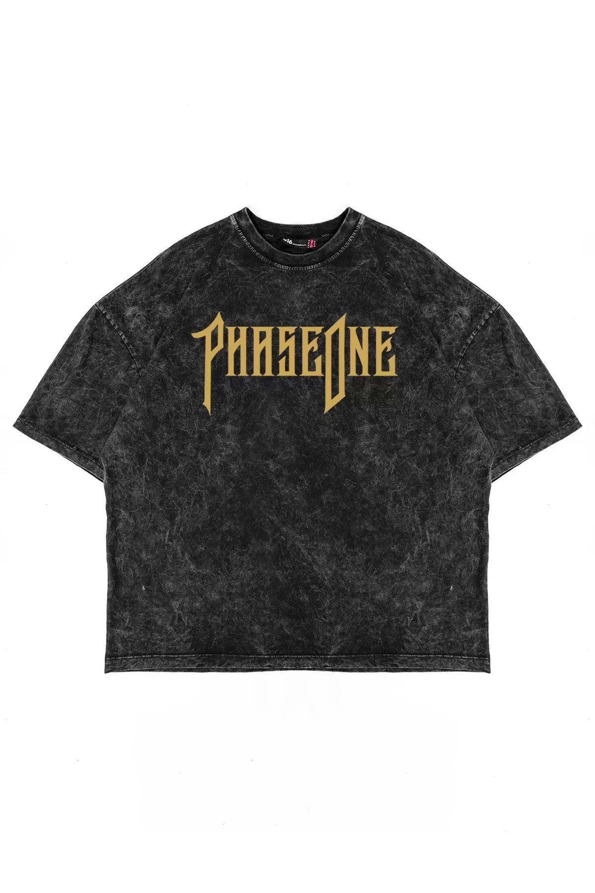 Yıkamalı Siyah Phaseone Sırt Baskılı Unisex Oversize Tshirt