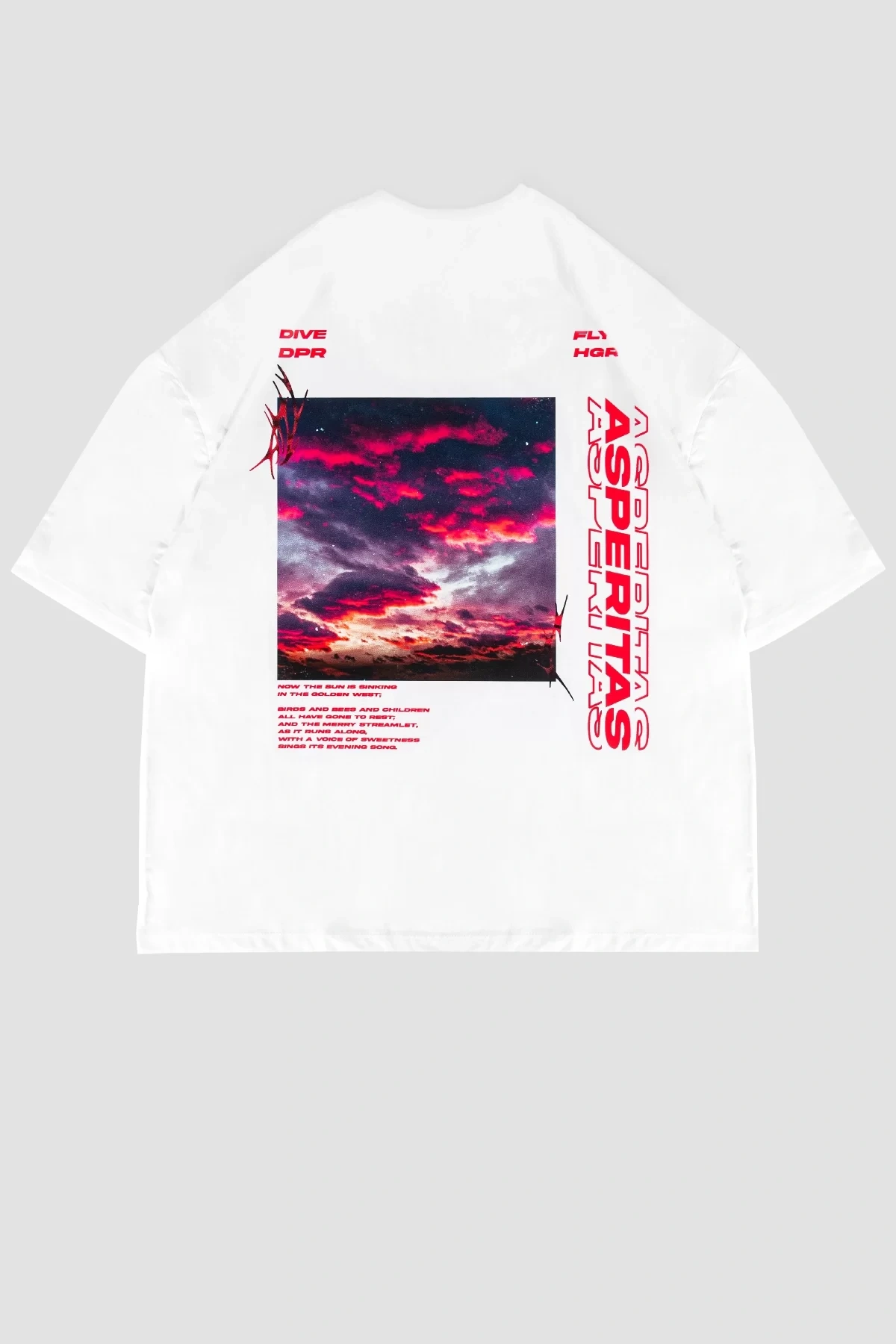 Asperitas Sırt Baskılı Beyaz Oversize Unisex Tshirt