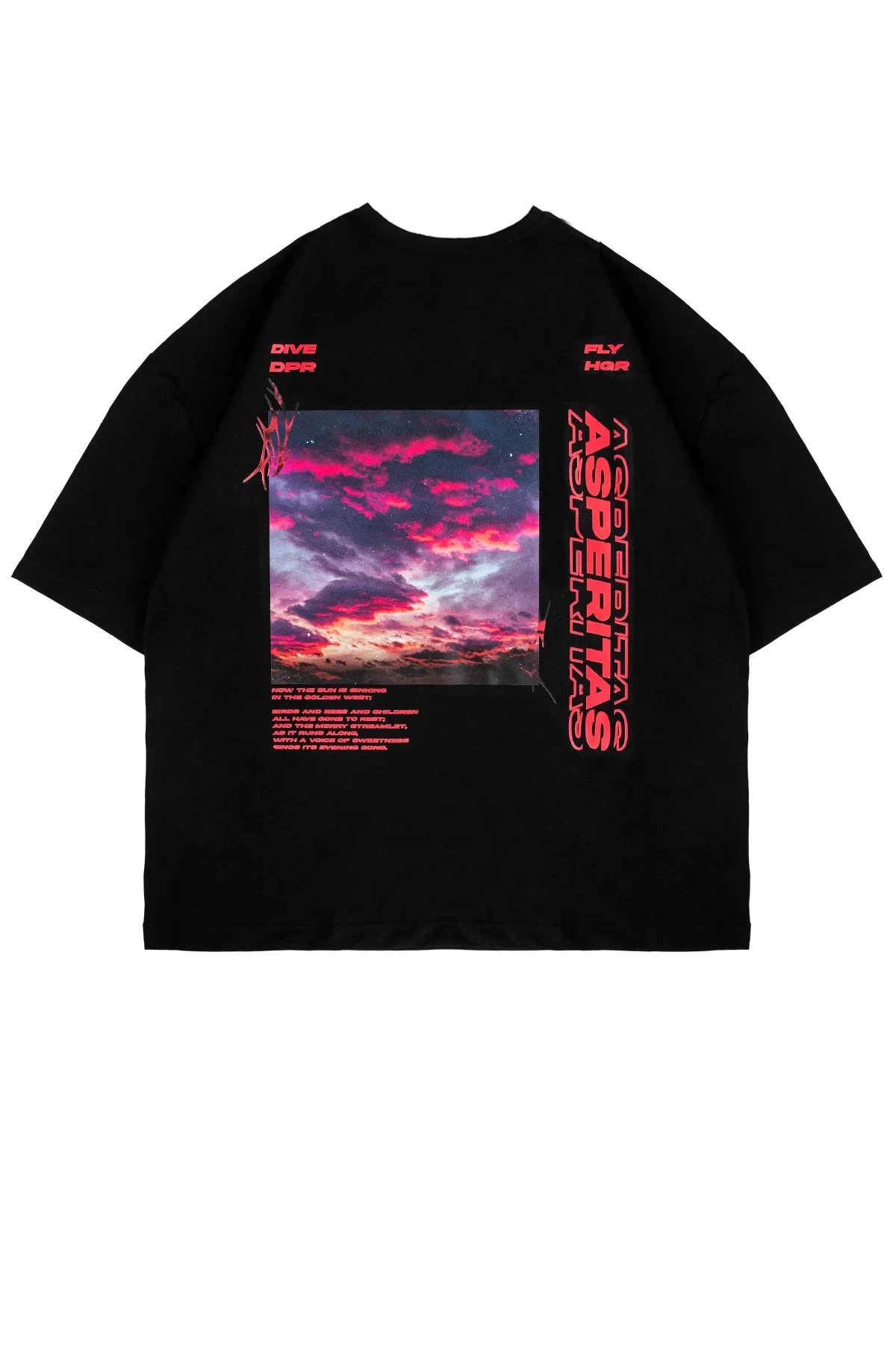 Asperitas Sırt Baskılı Siyah Oversize Unisex Tshirt