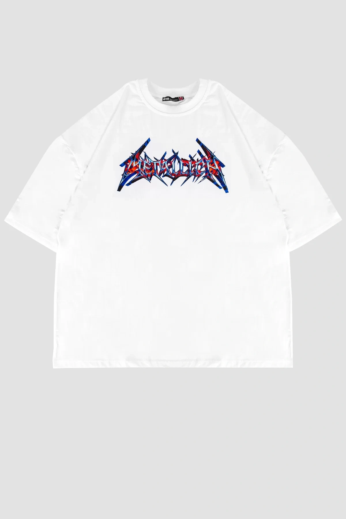 Colourful Metallica Logo Baskılı Beyaz Oversize Unisex Tshirt