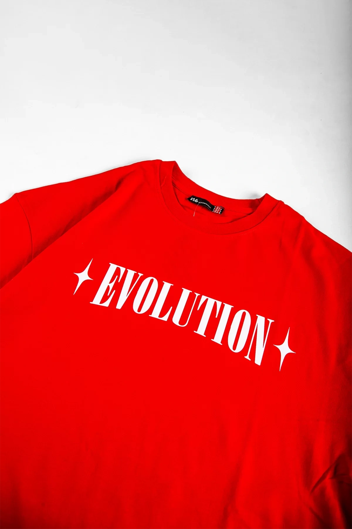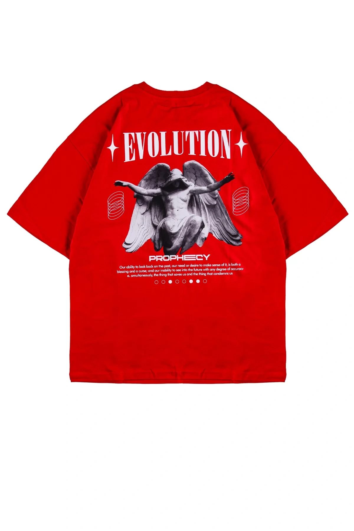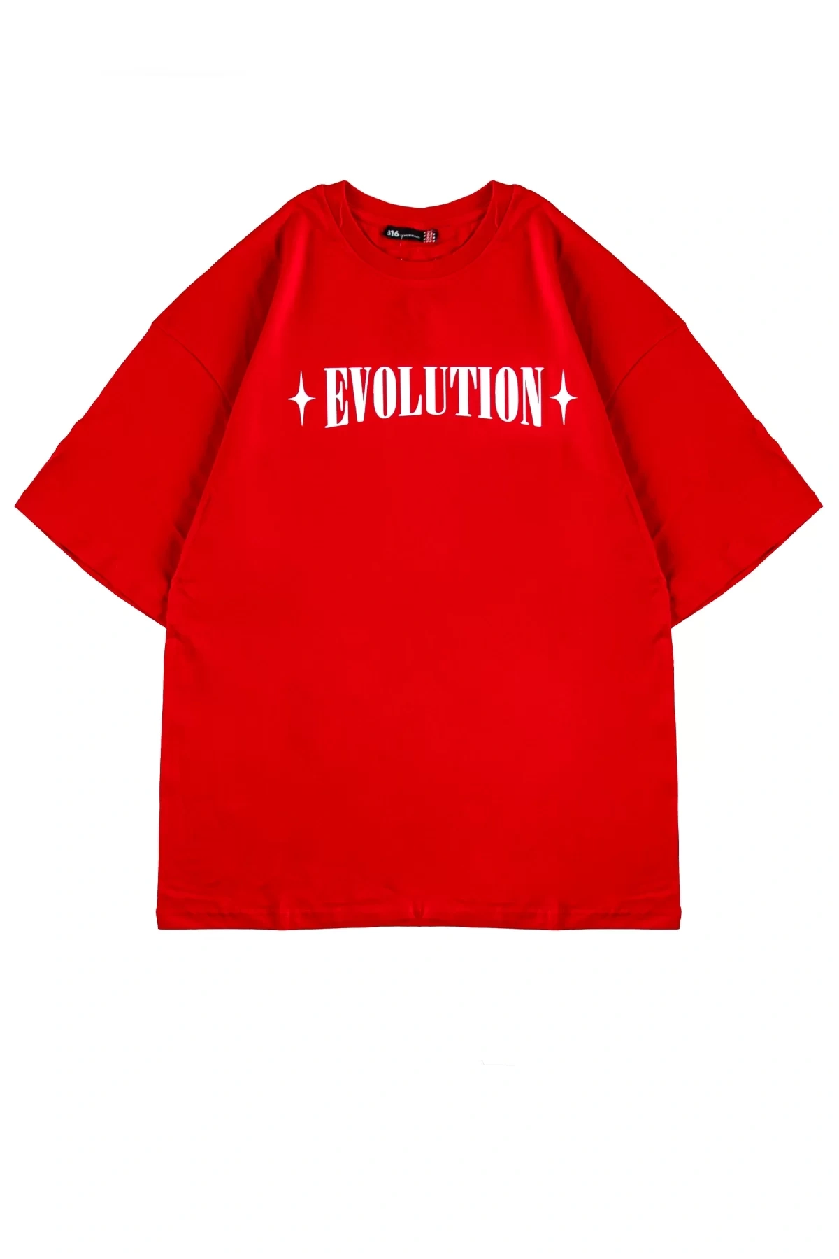 Evolution Sırt Baskılı Kırmızı Unisex Oversize Tshirt