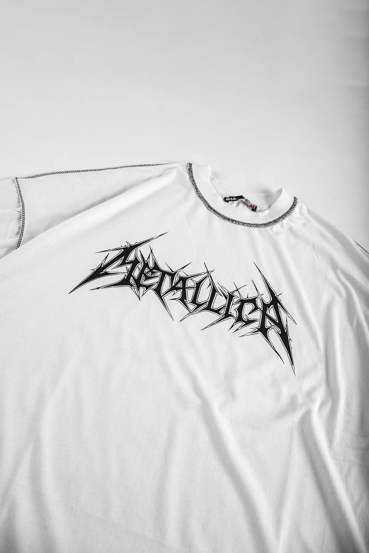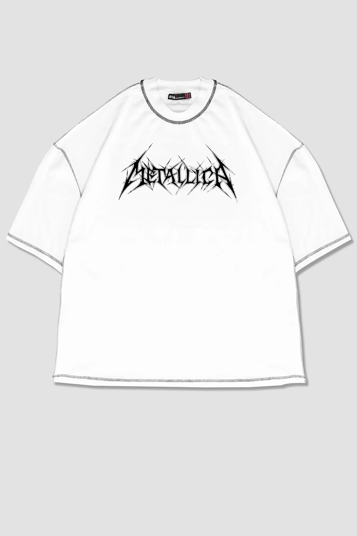 Metallica Logo Baskılı Ters Dikiş Detaylı Beyaz Oversize Unisex Tshirt