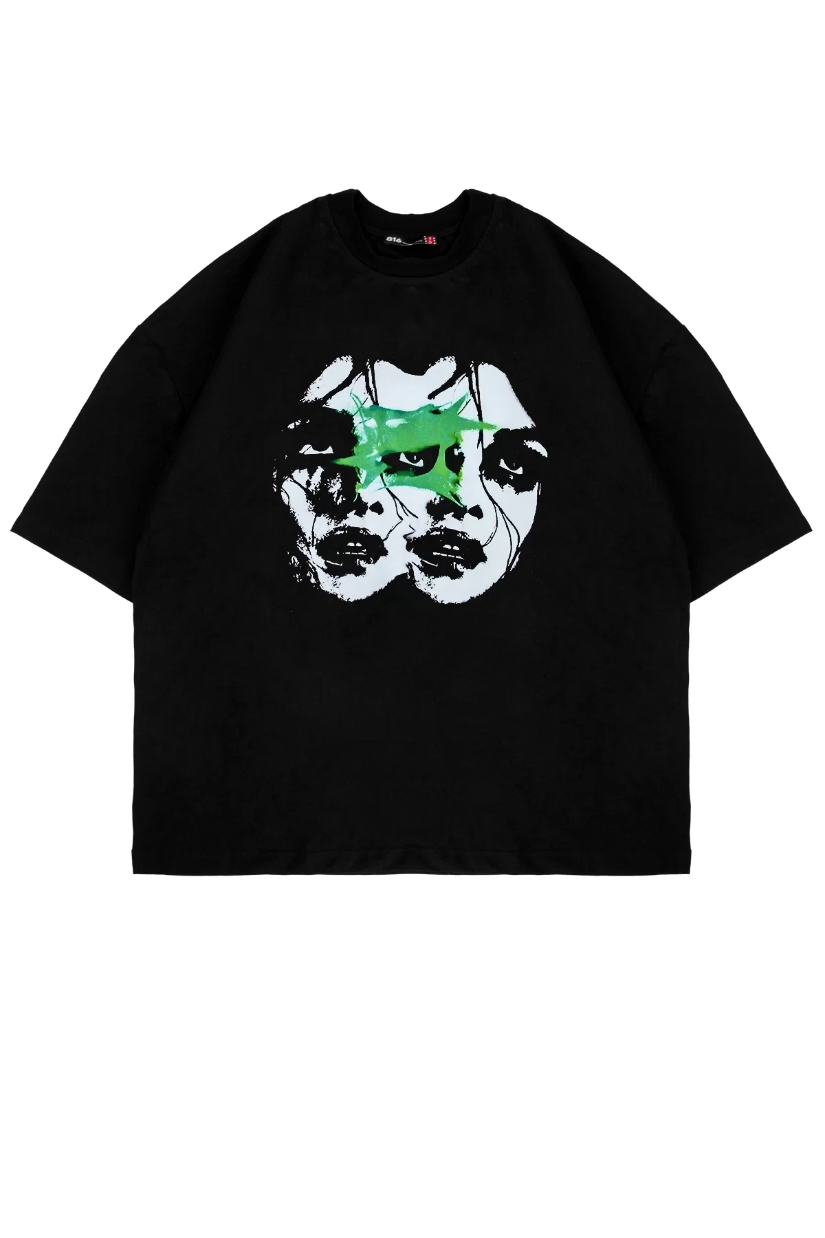 Phobia Sırt Baskılı Siyah Unisex Oversize Tshirt