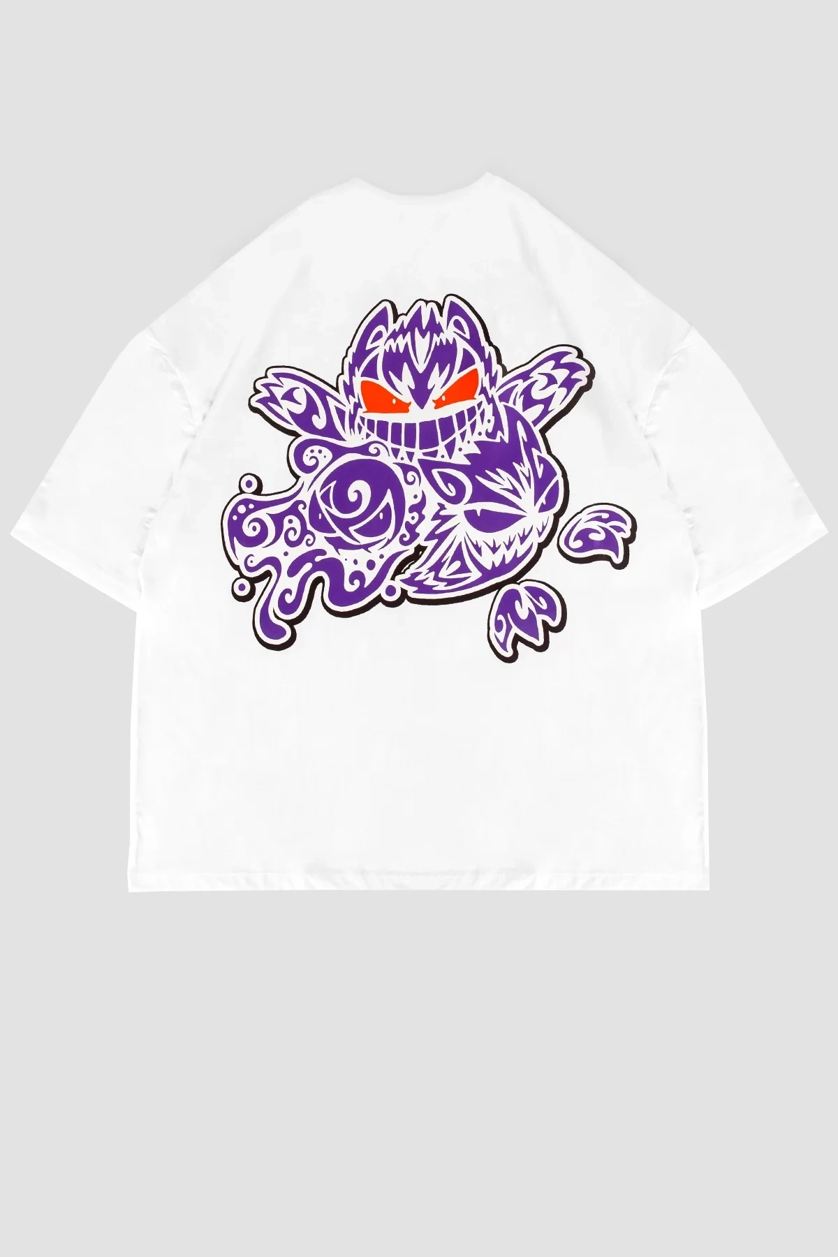 y2K Gengar Baskılı Beyaz Oversize Unisex Tshirt