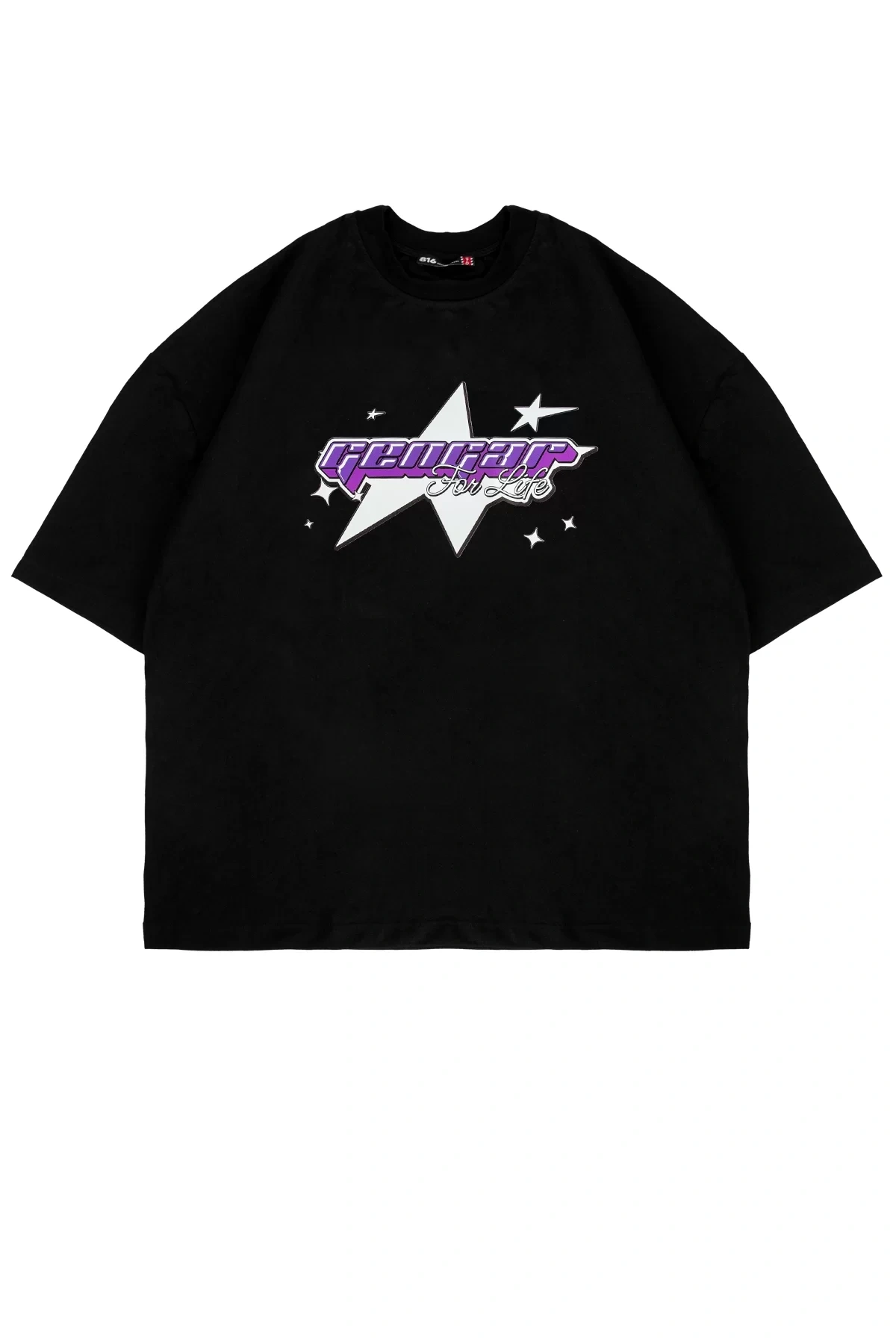 WE BORN Baskılı Siyah Oversize Unisex Tshirt