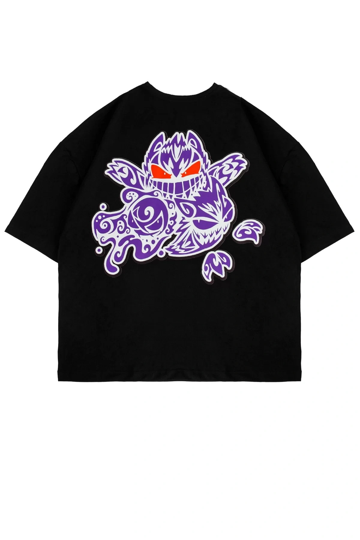 y2K Gengar Baskılı Siyah Oversize Unisex Tshirt