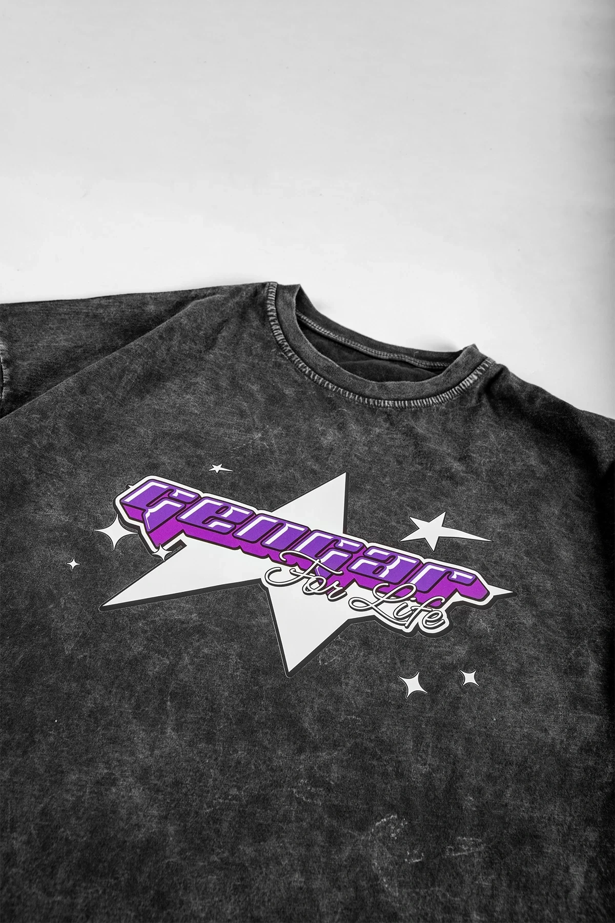 WE BORN Baskılı Yıkamalı Füme Oversize Unisex Tshirt