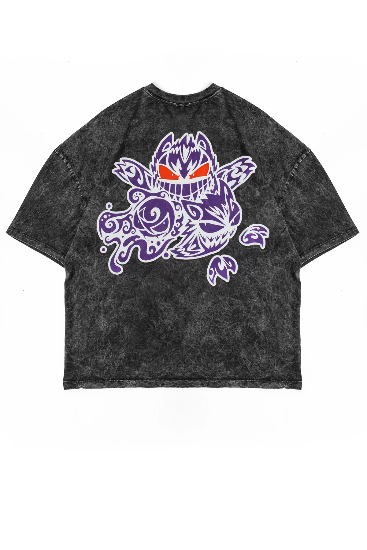 y2K Gengar Baskılı Yıkamalı Oversize Unisex Tshirt
