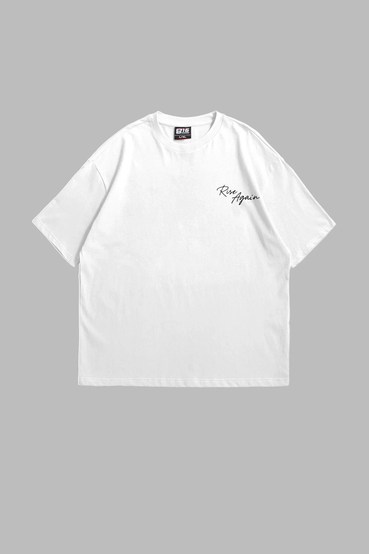 Rise Again Baskılı Premium Oversize Unisex Beyaz Tshirt