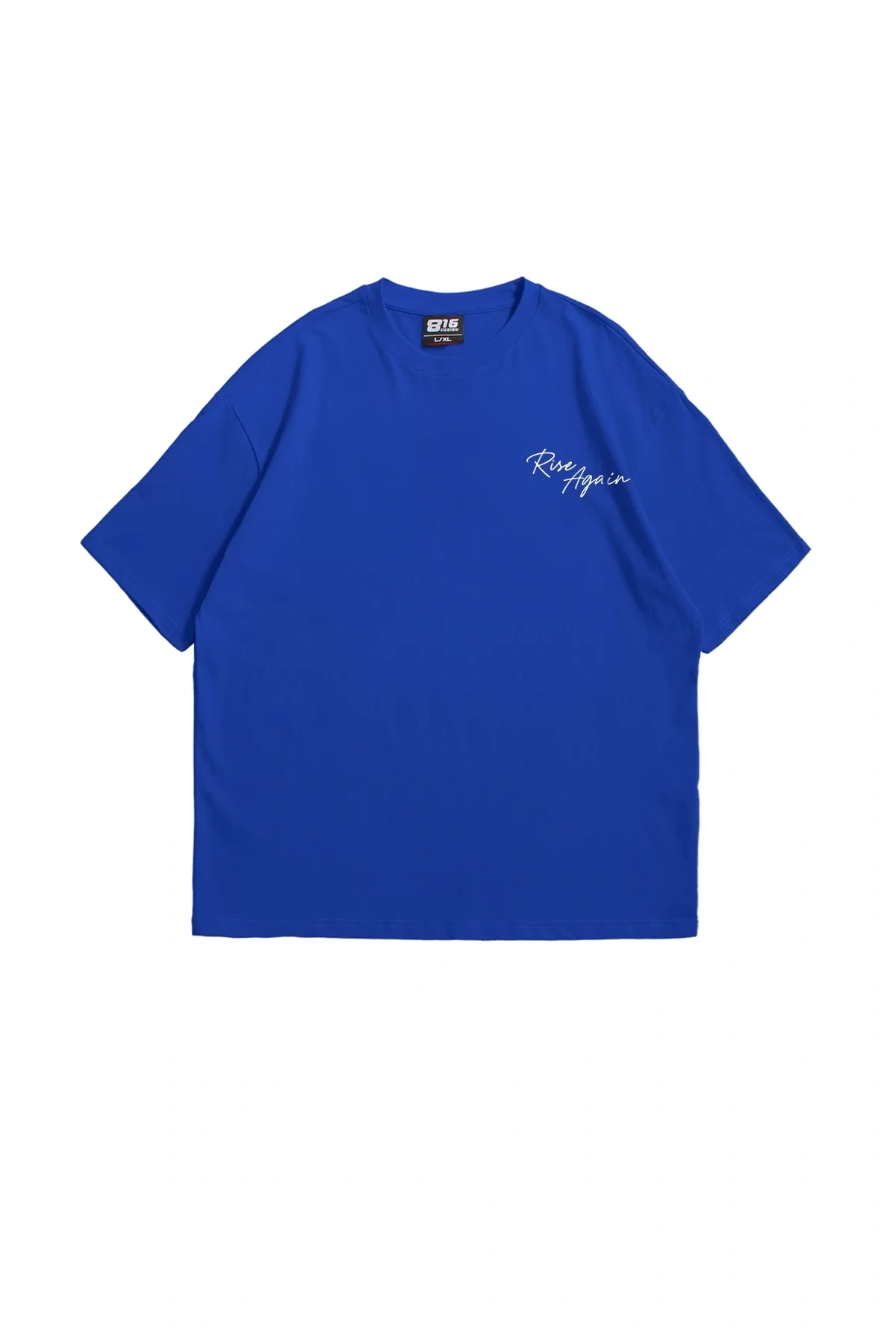 Rise Again Baskılı Premium Oversize Unisex Mavi Tshirt