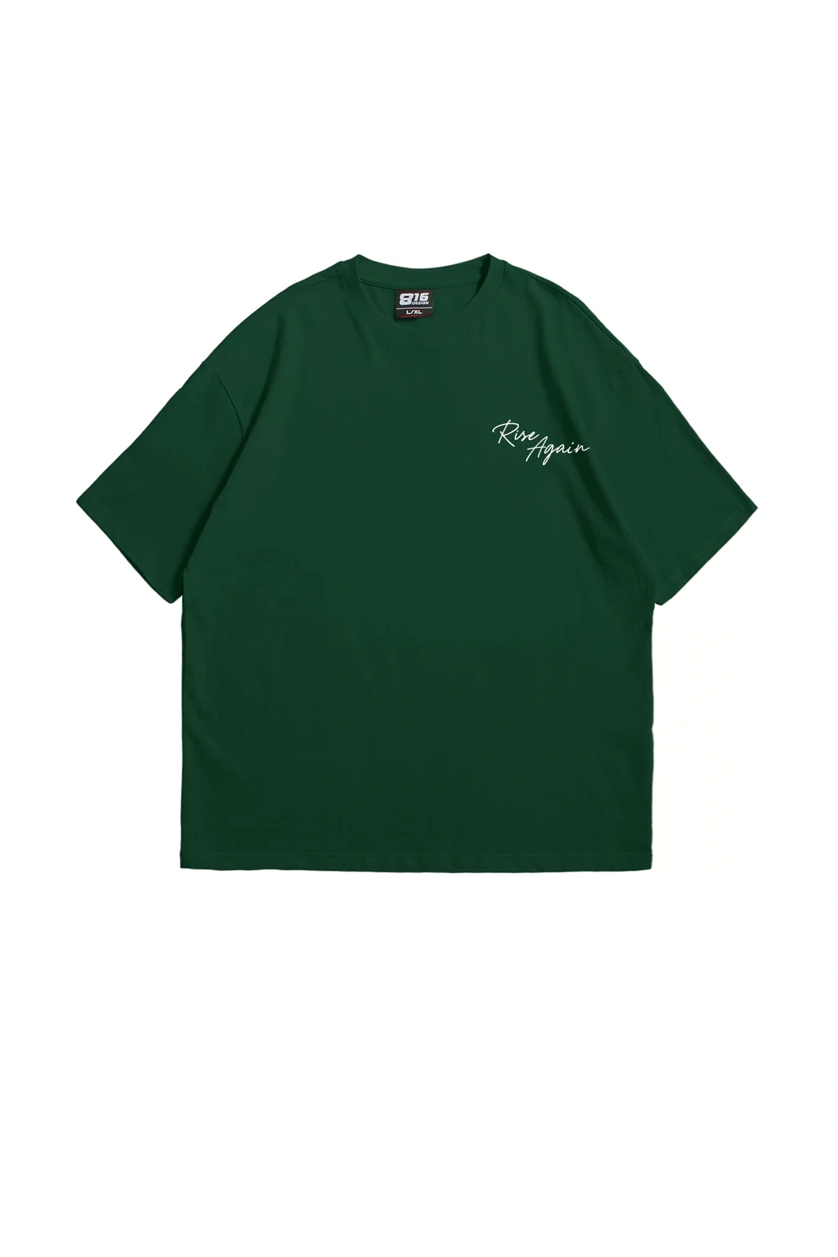 Rise Again Baskılı Premium Oversize Unisex Yeşil Tshirt