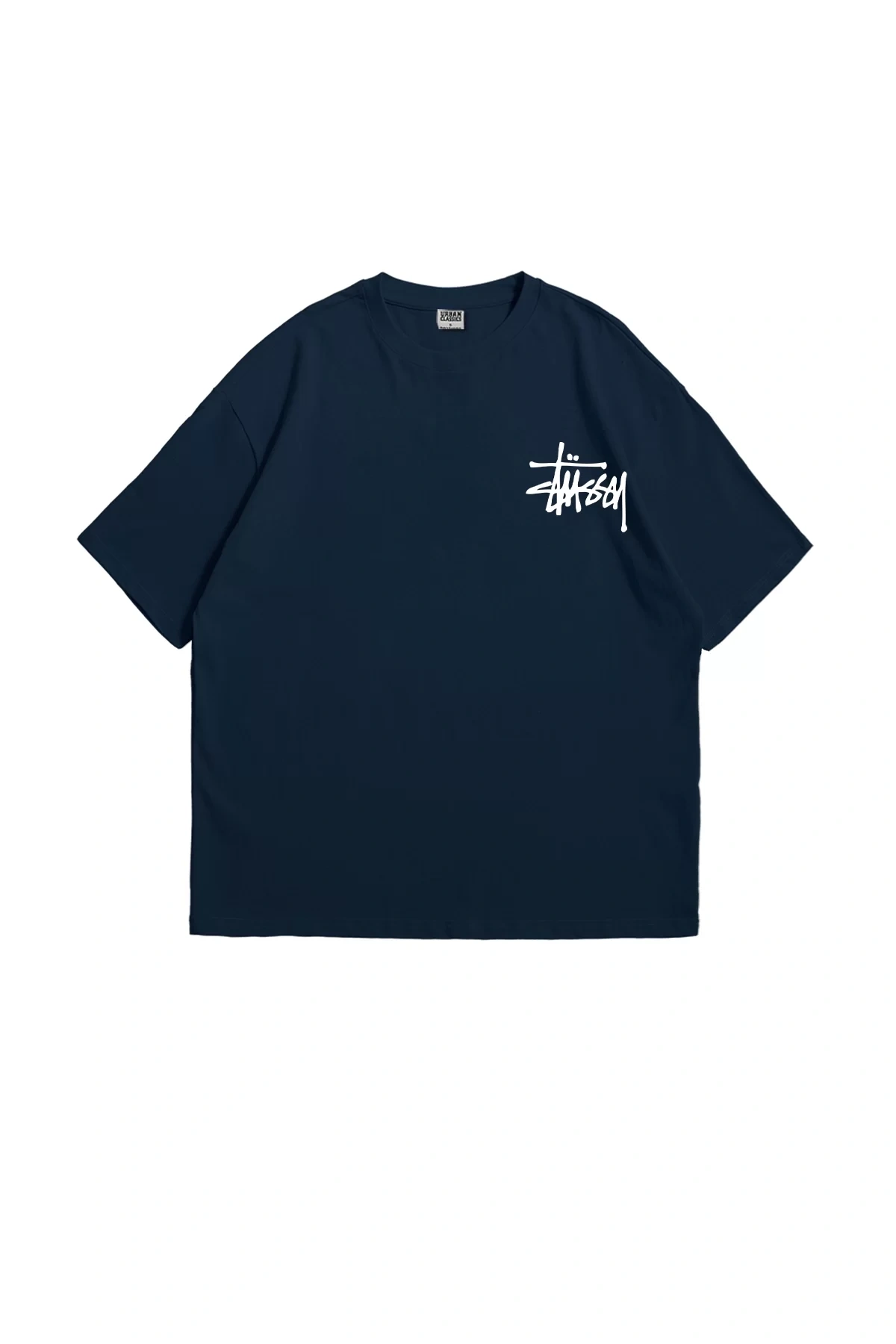 S Yazı Baskılı Premium Oversize Unisex Lacivert Tshirt