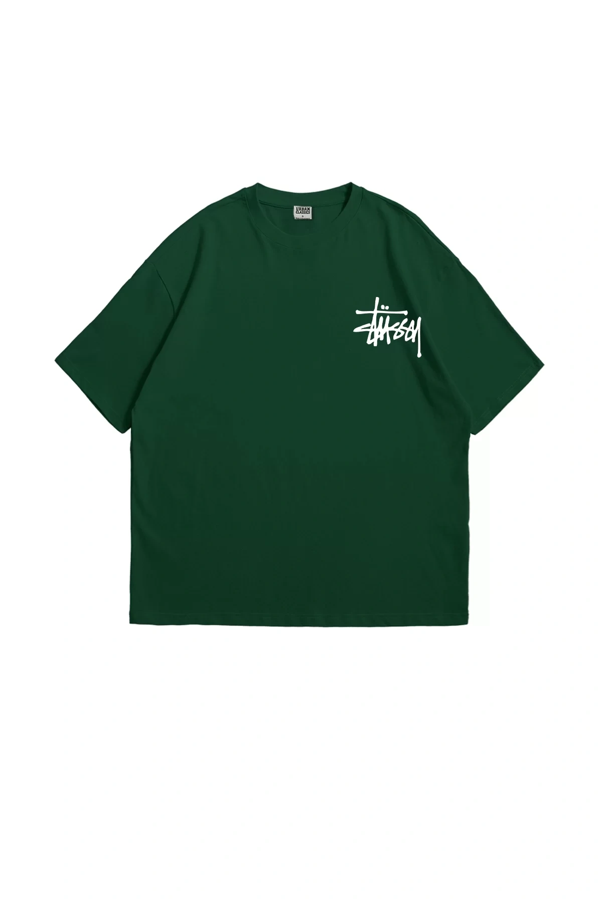 S Yazı Baskılı Premium Oversize Unisex Yeşil Tshirt