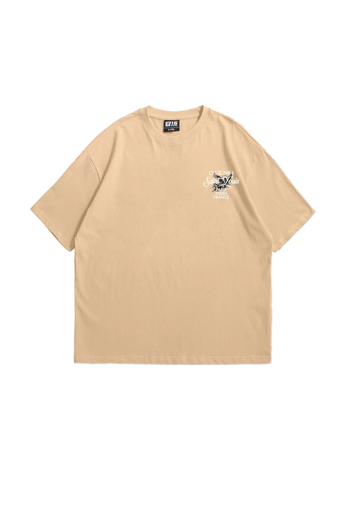 Saint Louis Baskılı Premium Oversize Unisex Bej Tshirt