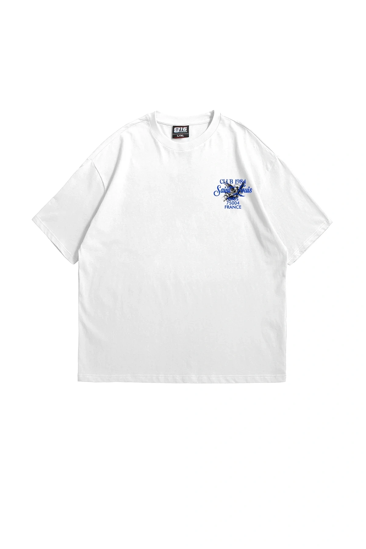 Saint Louis Baskılı Premium Oversize Unisex Beyaz Tshirt