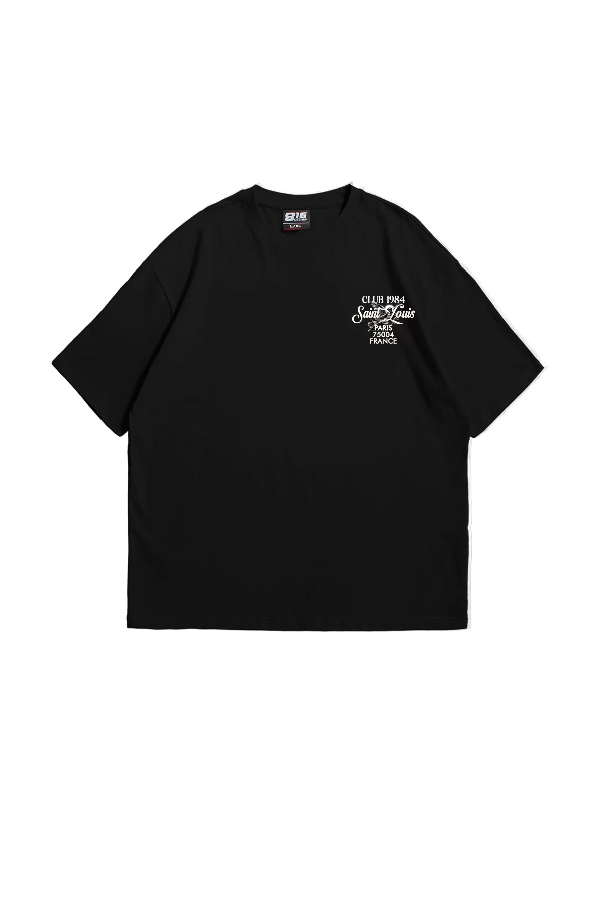 Saint Louis Baskılı Premium Oversize Unisex Siyah Tshirt