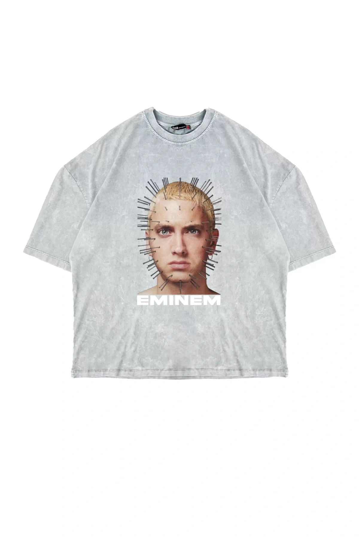 Eminem İkon Baskılı Unisex Yıkamalı Beyaz Tshirt