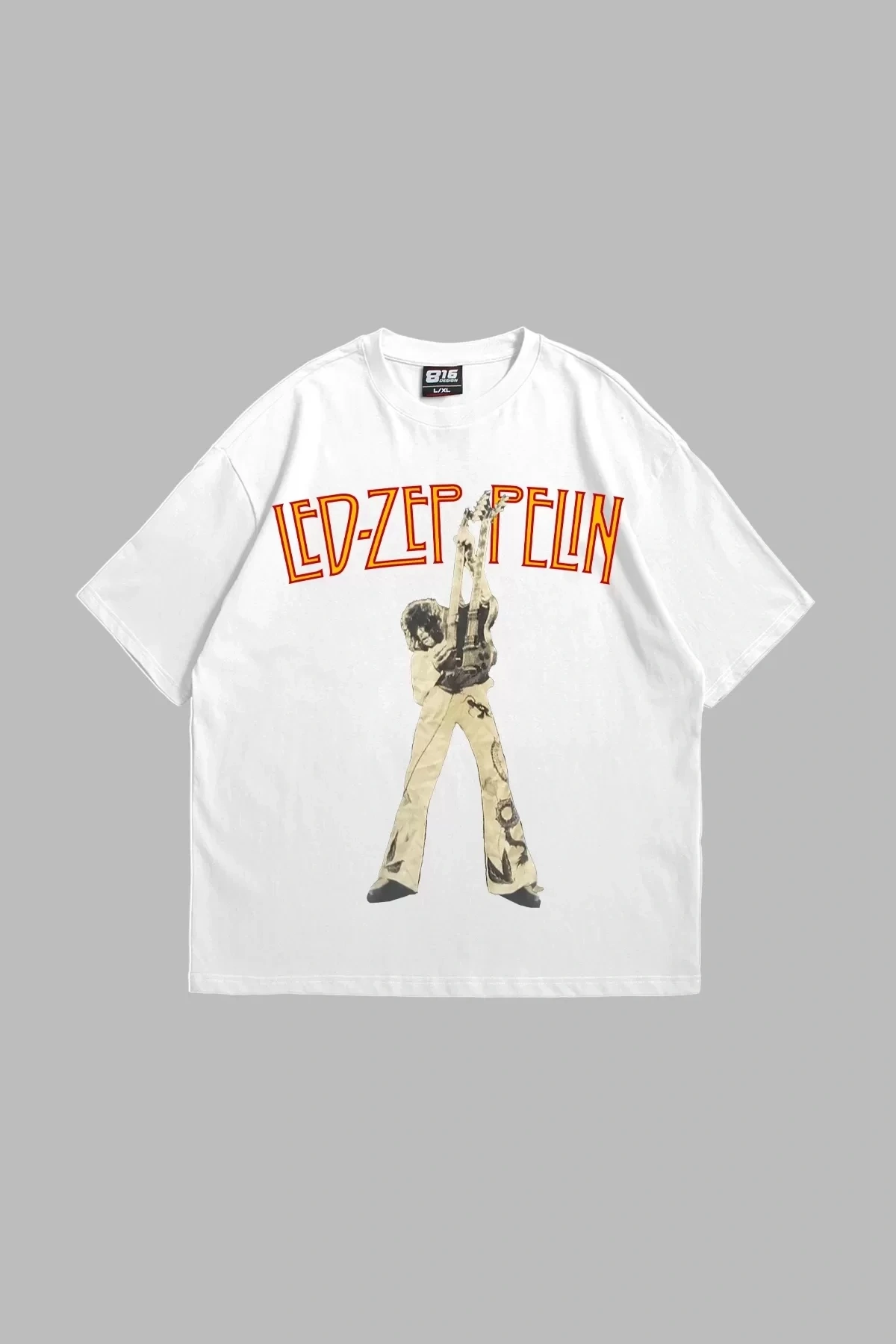 Led Zeppelin Human Baskılı Oversize 24/1 Unisex Beyaz Tshirt