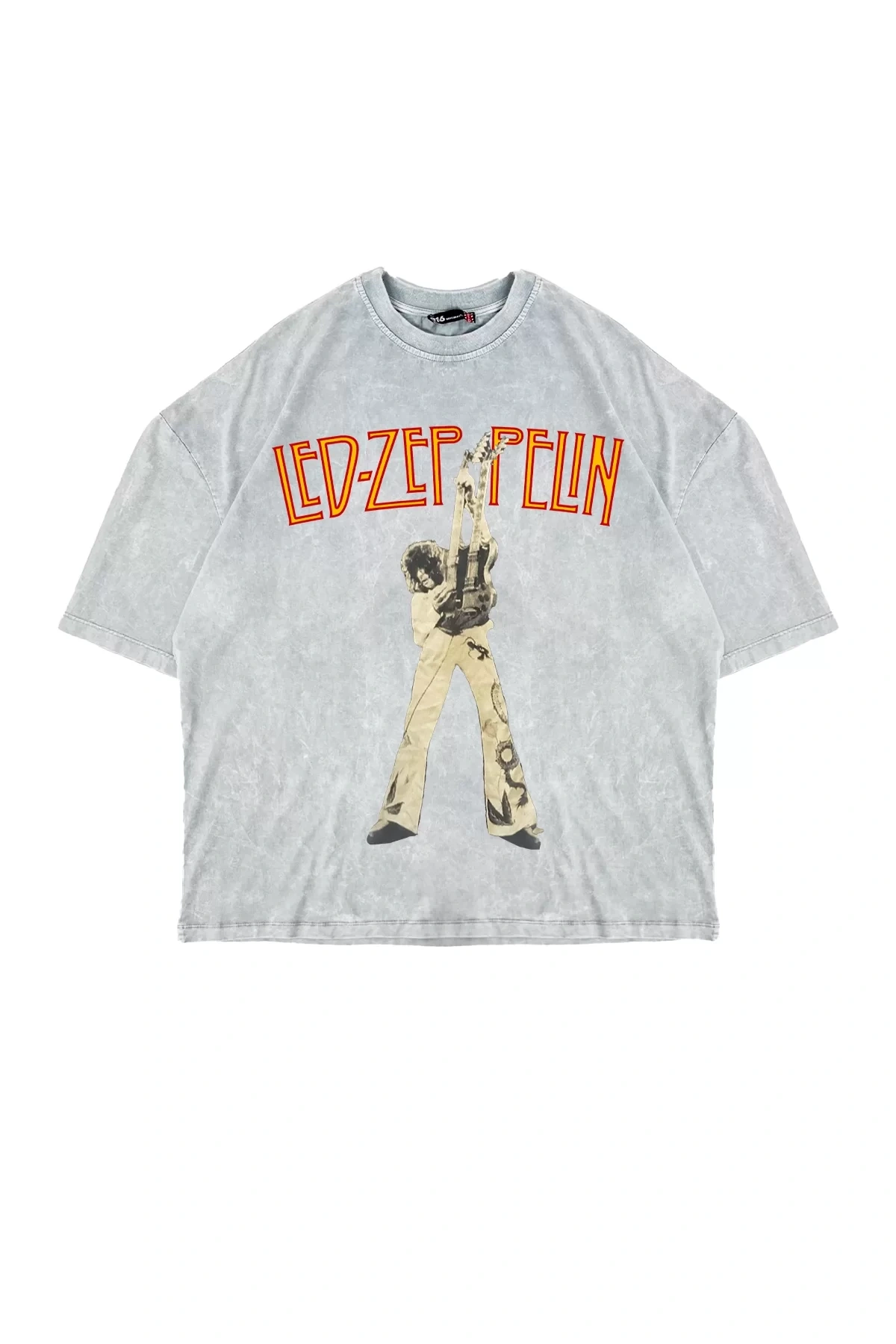 Led Zeppelin Human Baskılı Oversize 24/1 Unisex Yıkamalı Beyaz Tshirt