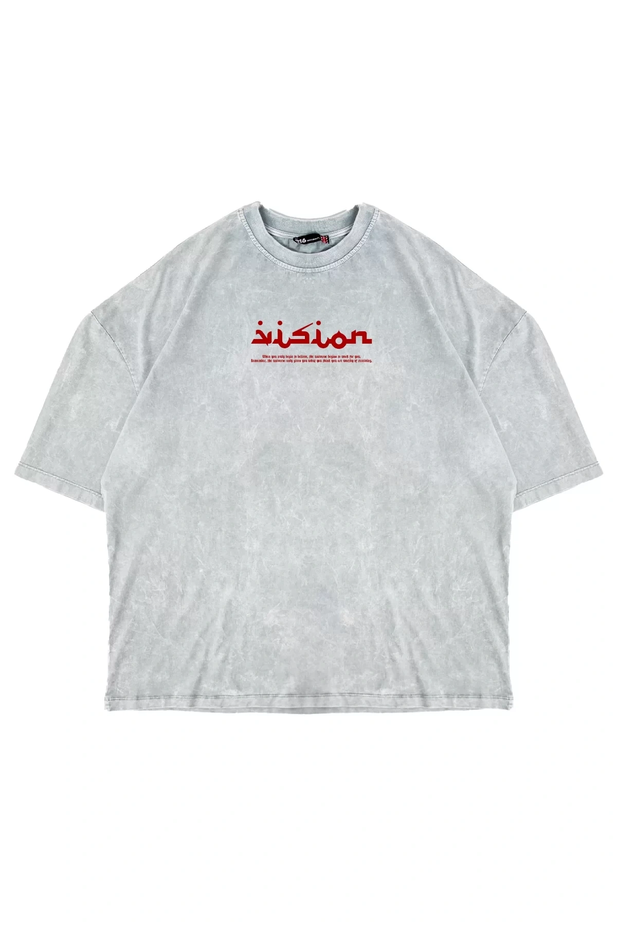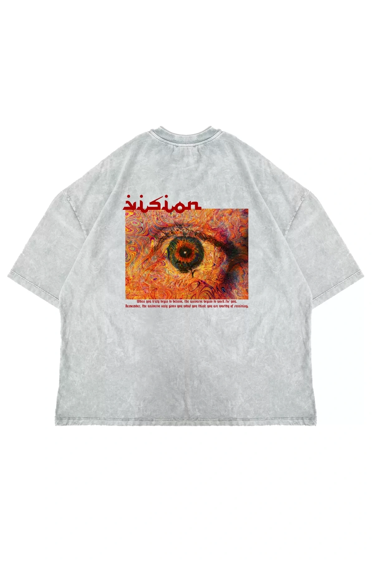 Vision Baskılı Oversize Unisex Yıkamalı Beyaz Tshirt