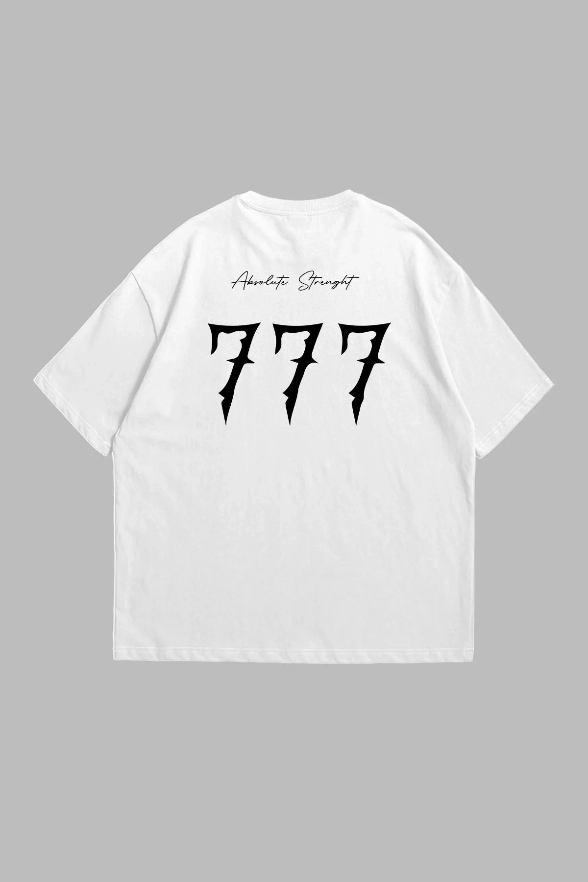 777 Sırt Baskılı Oversize Unisex Beyaz Tshirt