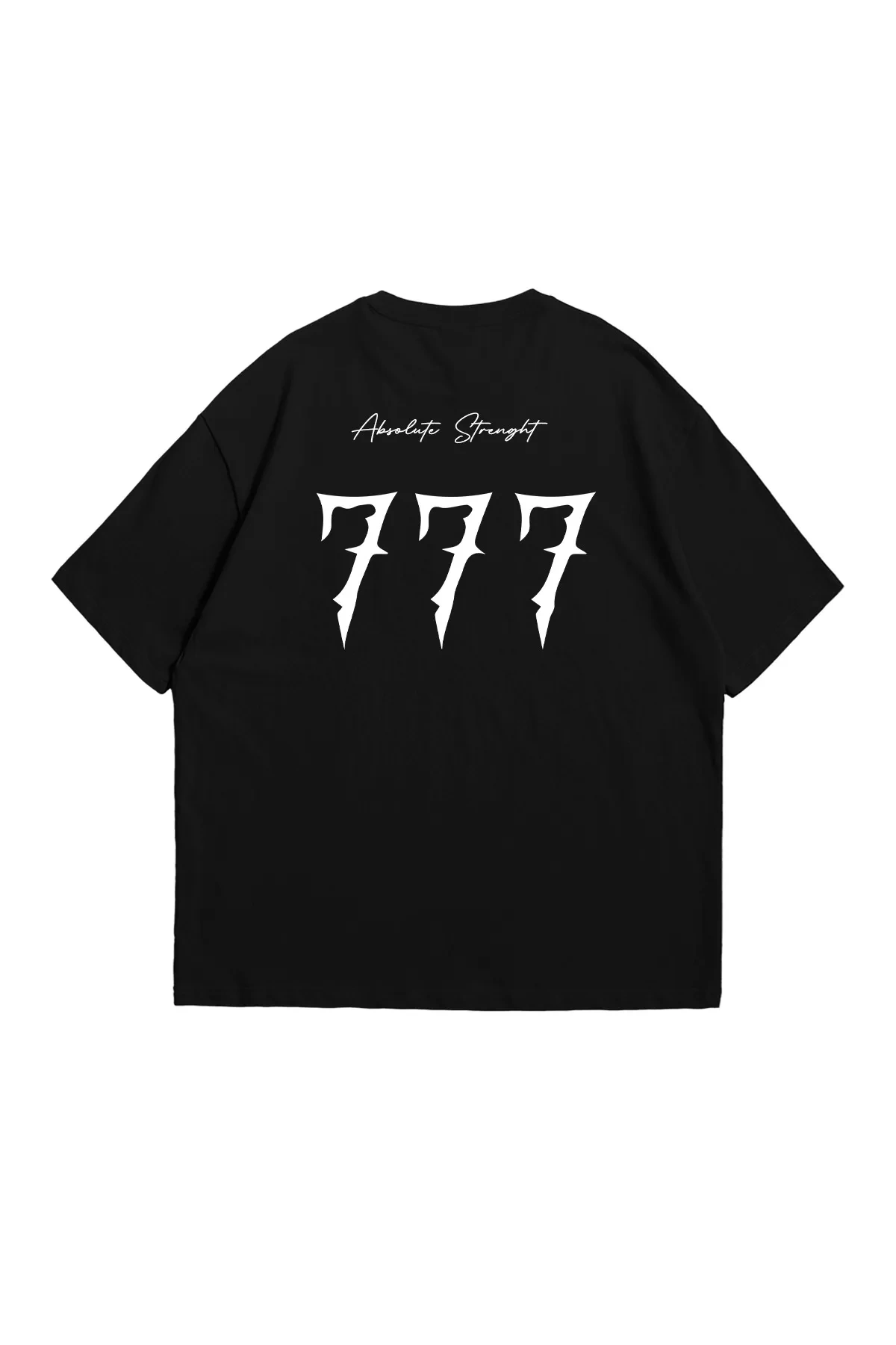 777 Sırt Baskılı Oversize Unisex Siyah Tshirt