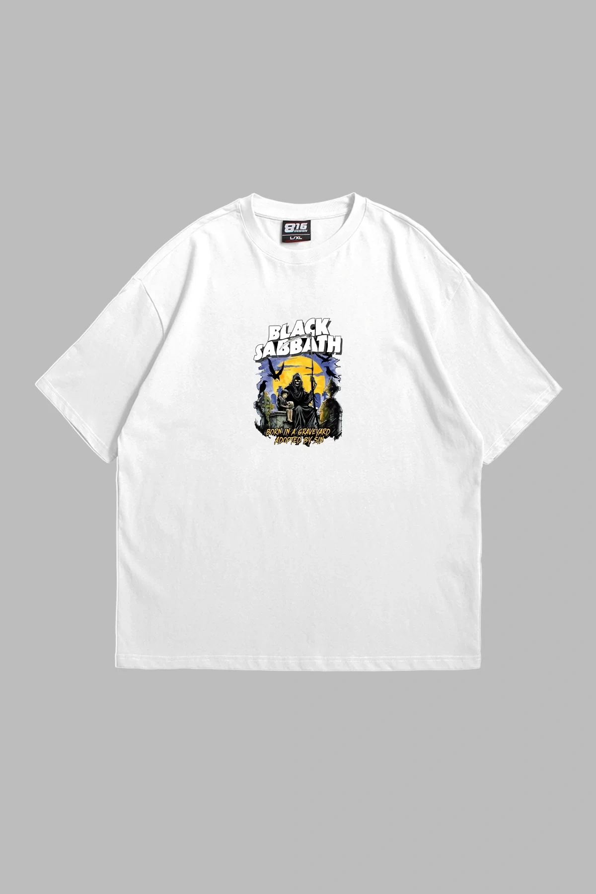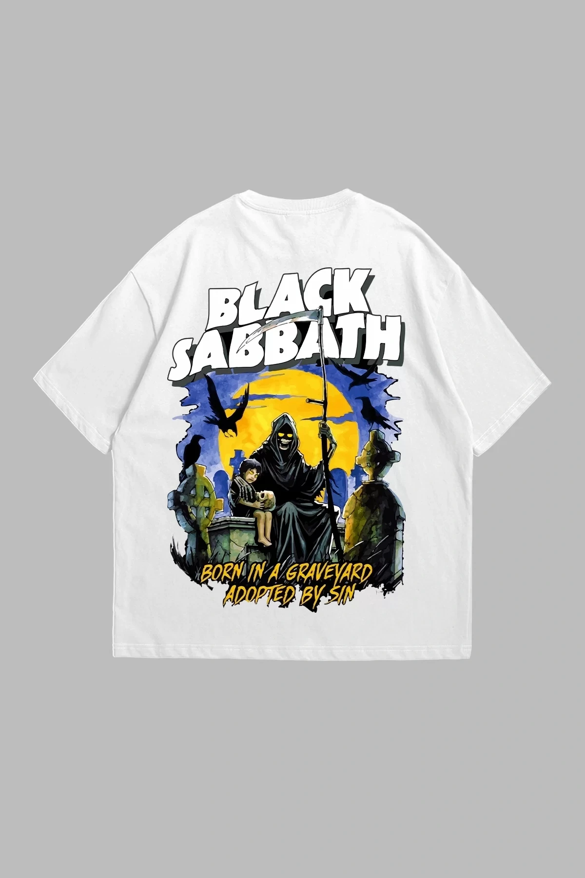 Black Sabbath 24/1 Baskılı Oversize Unisex Beyaz Tshirt