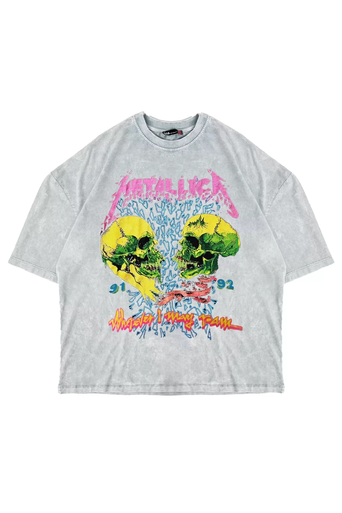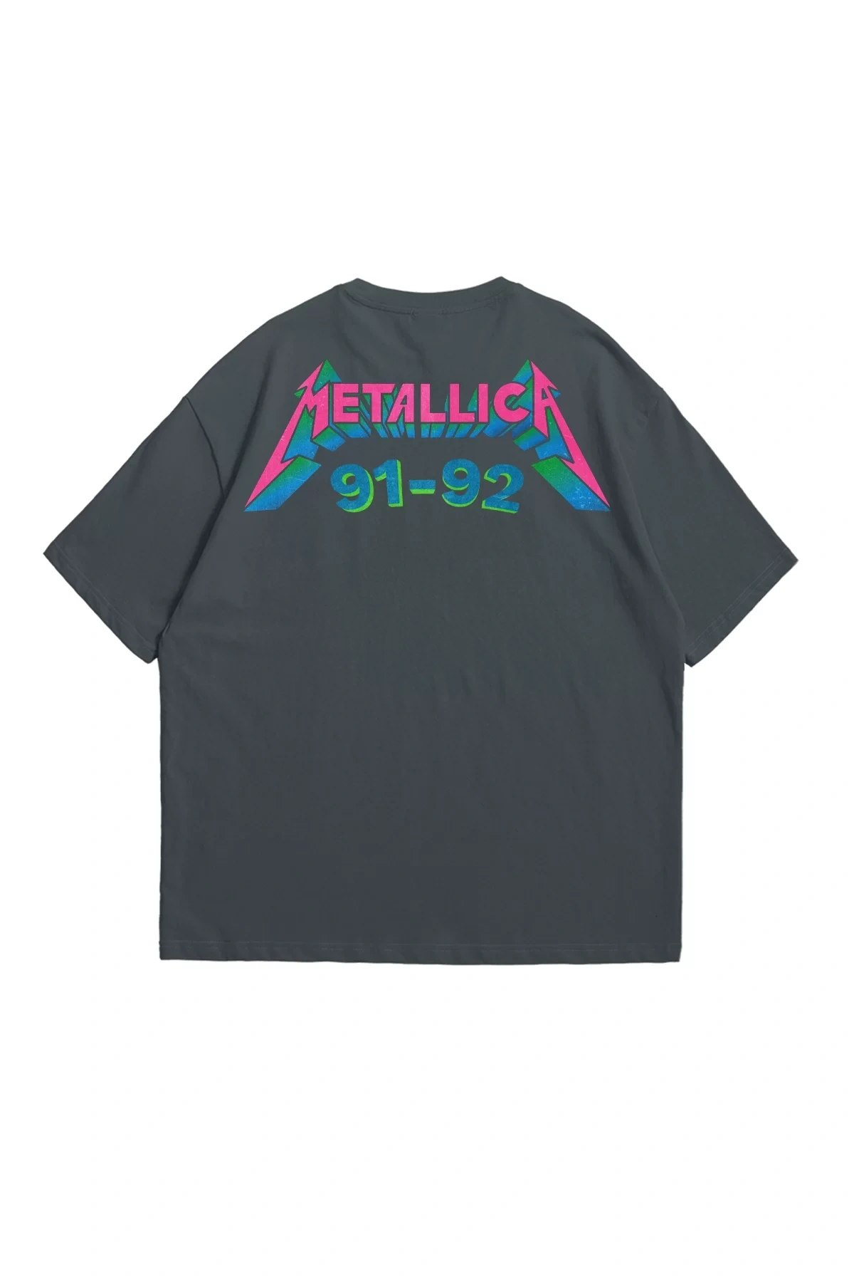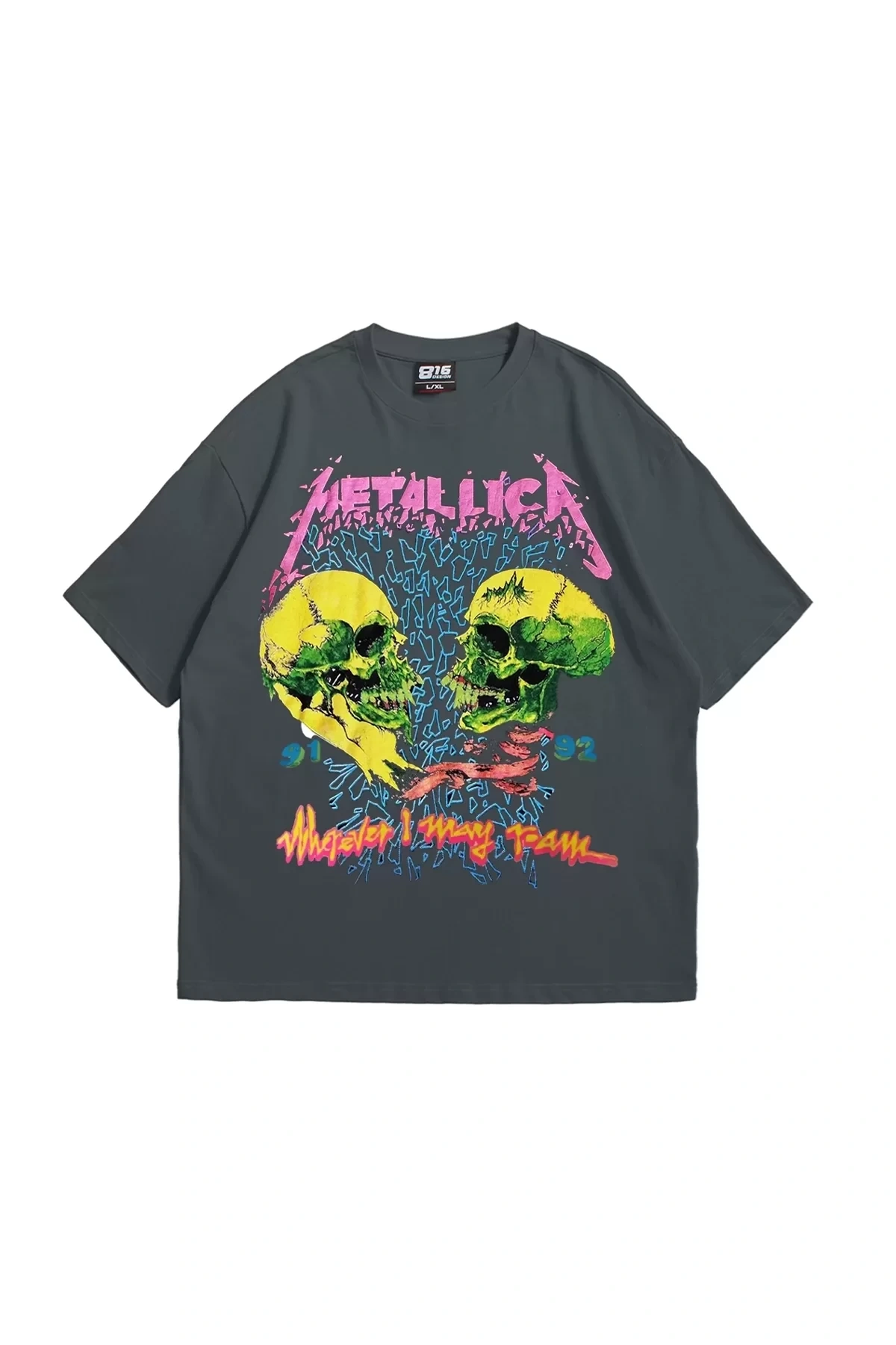 Metallica Skull 24/1 Baskılı Oversize Unisex Antraist Tshirt