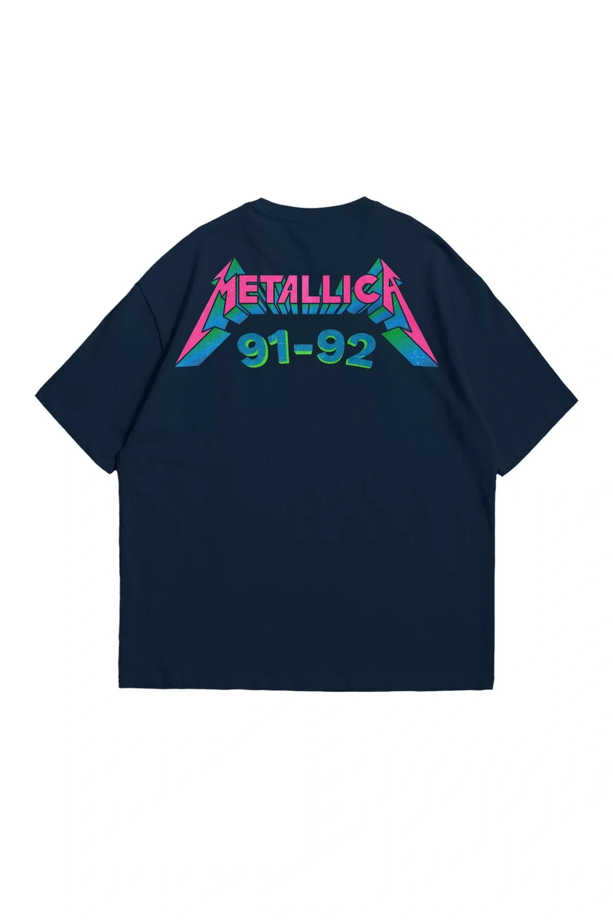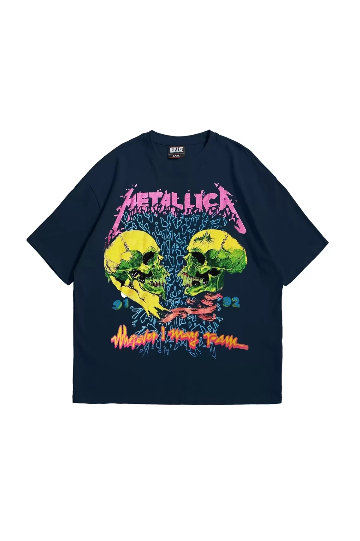 Metallica Skull 24/1 Baskılı Oversize Unisex Lacivert Tshirt
