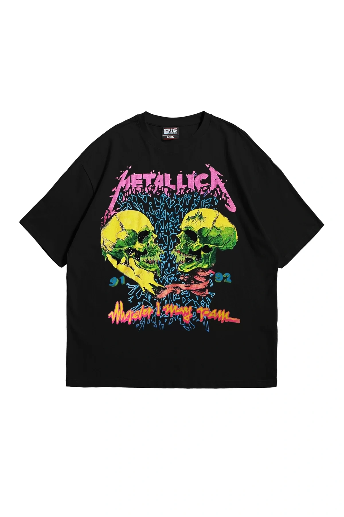 Metallica Skull 24/1 Baskılı Oversize Unisex Siyah Tshirt