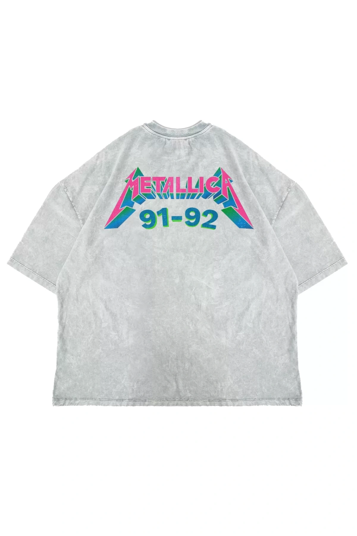 Metallica Skull 24/1 Baskılı Oversize Unisex Yıkamalı Beyaz Tshirt