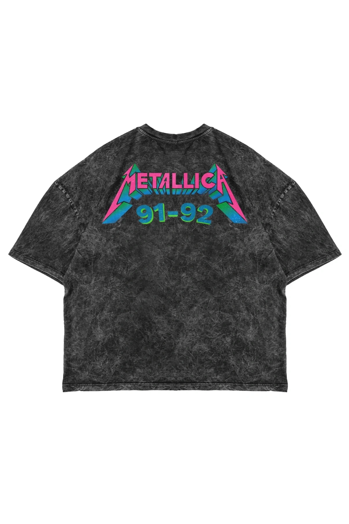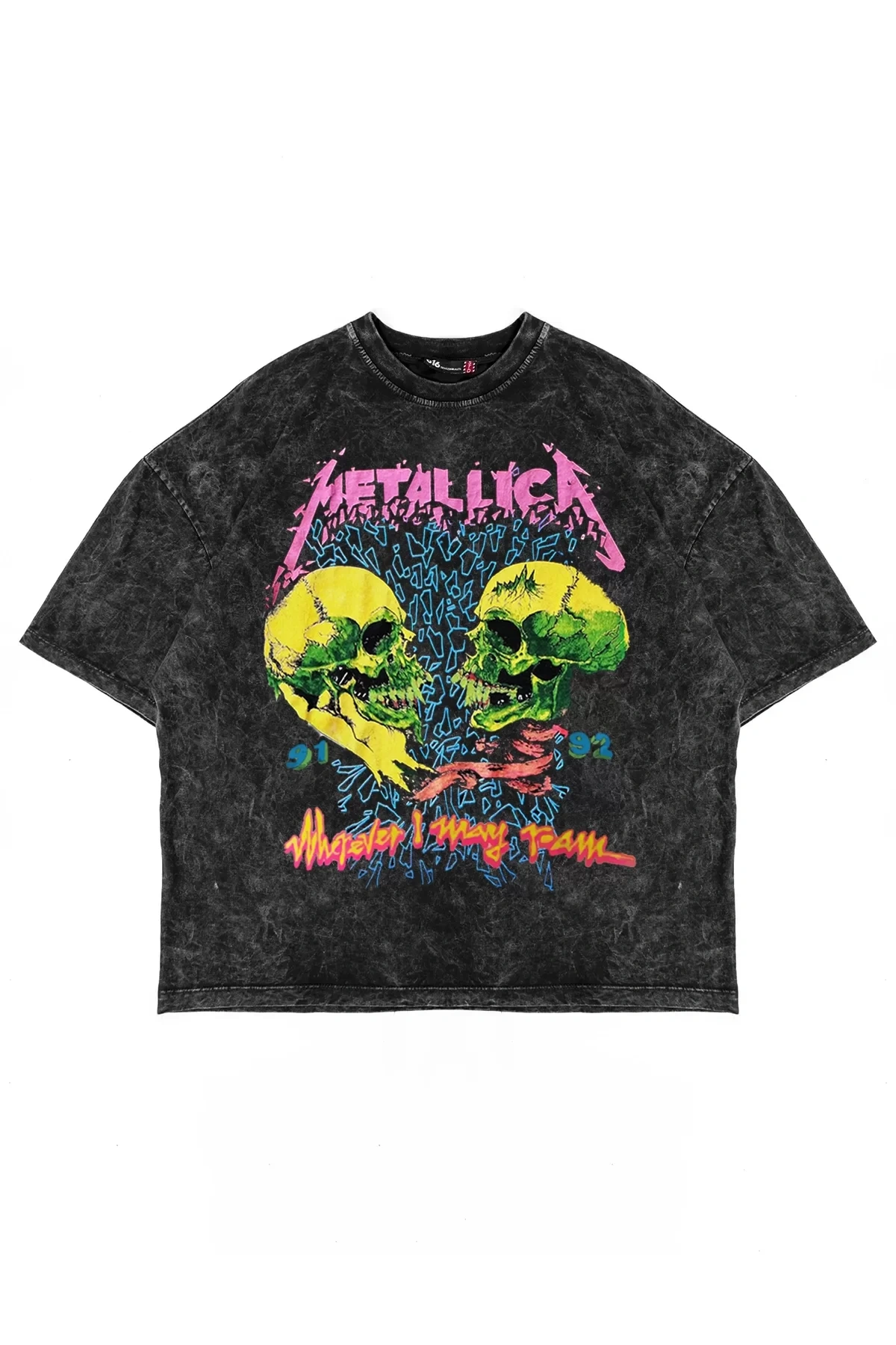 Metallica Skull 24/1 Baskılı Oversize Unisex Yıkamalı Siyah Tshirt