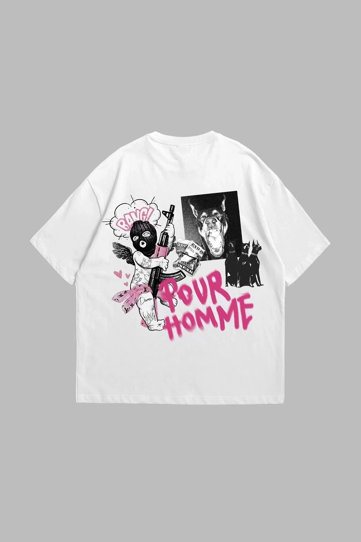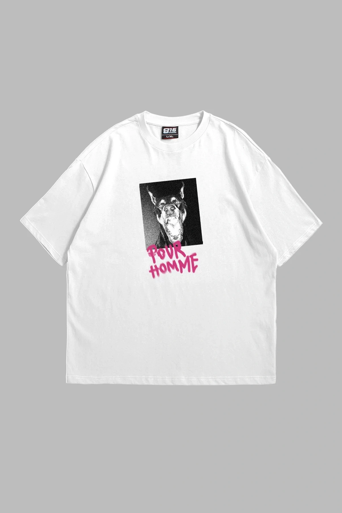 Pour Homme 24/1 Baskılı Oversize Unisex Beyaz Tshirt