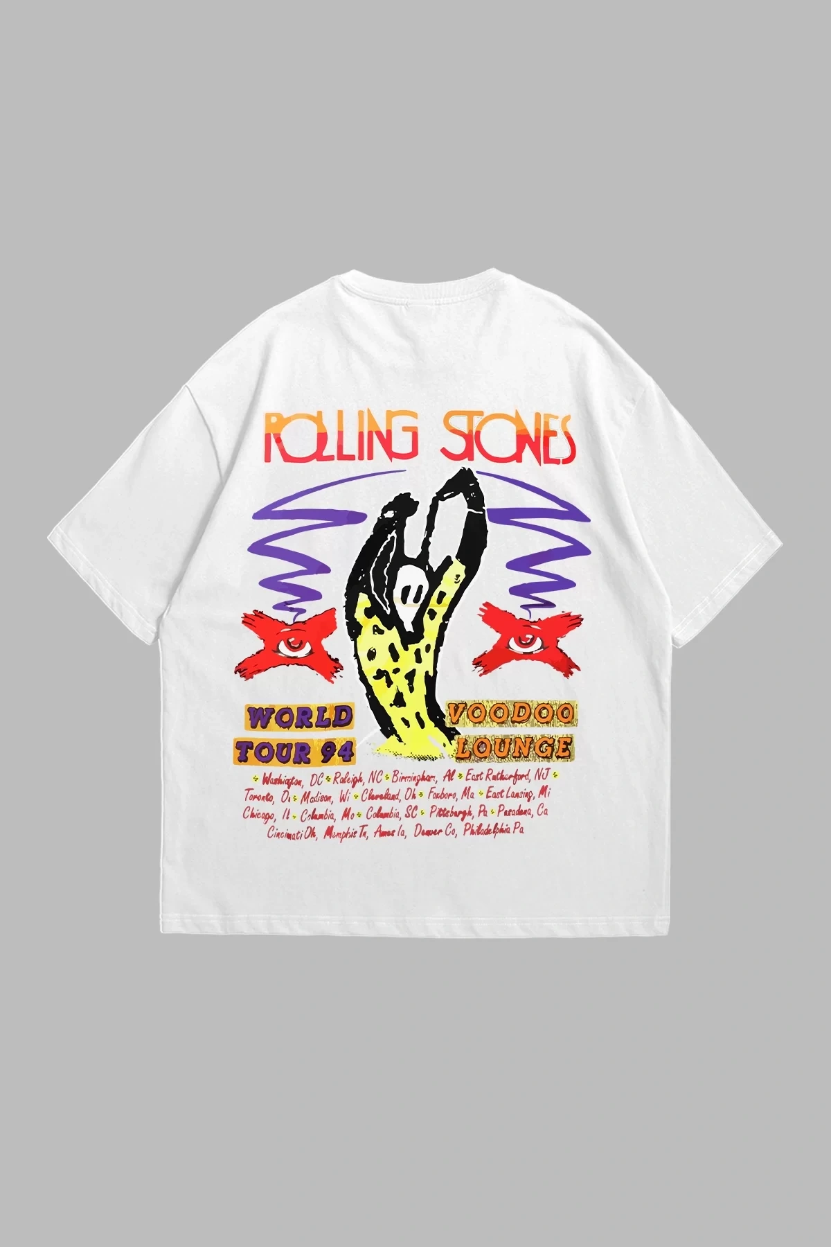 Rolling Stone Voodoo Lounge 24/1 Baskılı Oversize Unisex Beyaz Tshirt