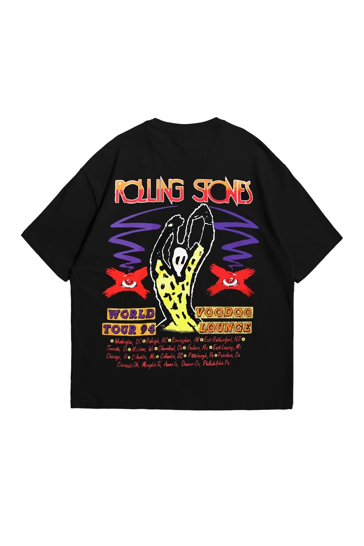 Rolling Stone Voodoo Lounge 24/1 Baskılı Oversize Unisex Siyah Tshirt