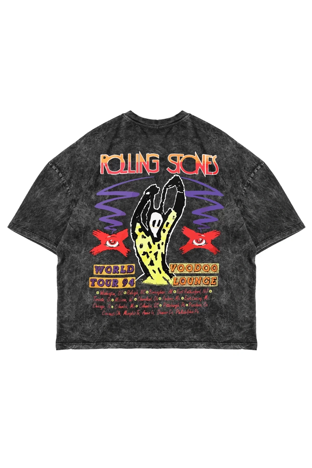 Rolling Stone Voodoo Lounge 24/1 Baskılı Oversize Unisex Yıkamalı Siyah Tshirt