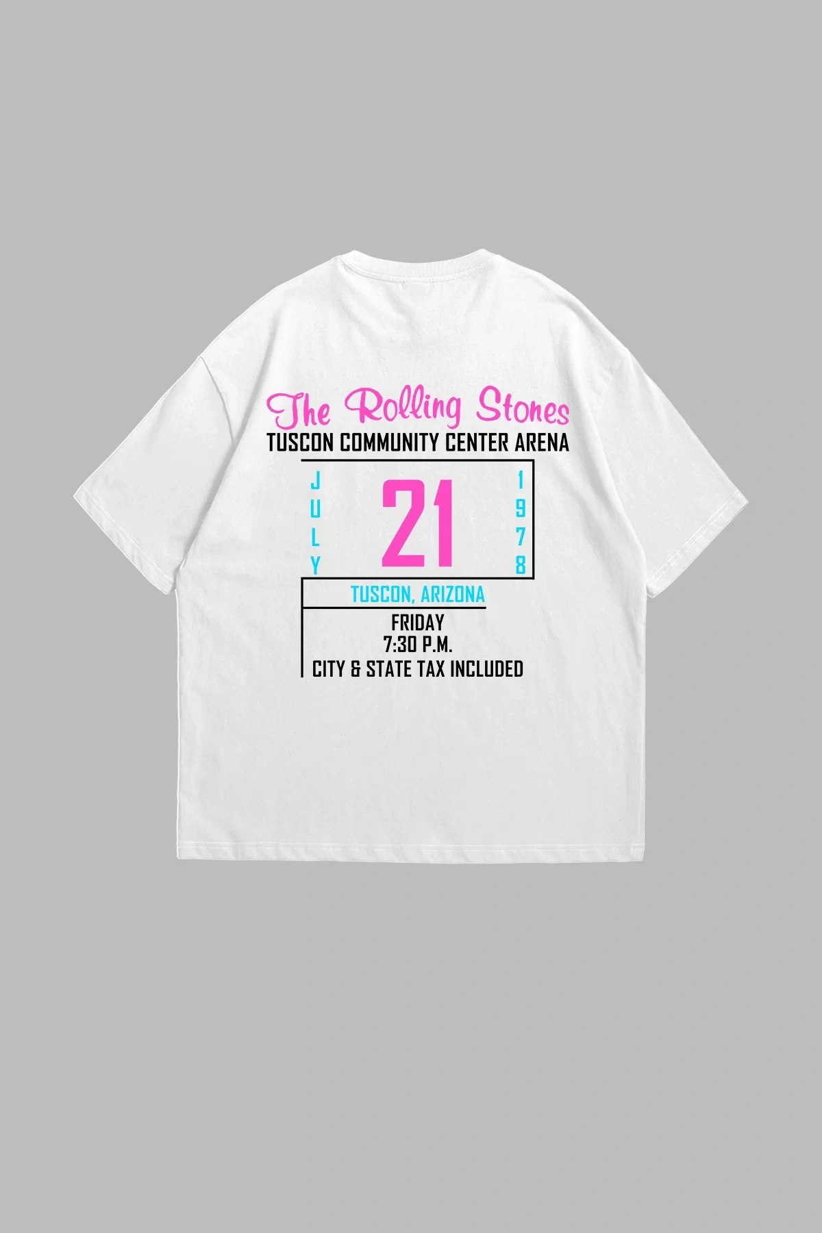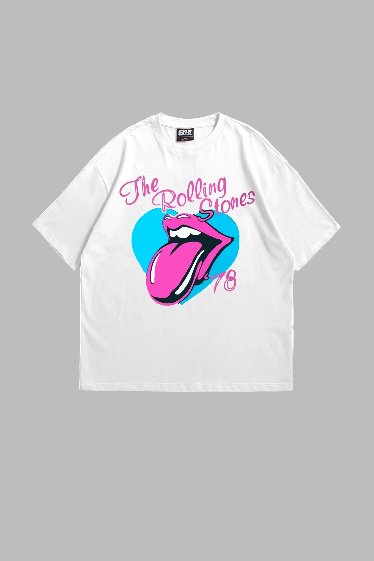 Rolling Stones Baskılı 24/1 Baskılı Oversize Unisex Beyaz Tshirt