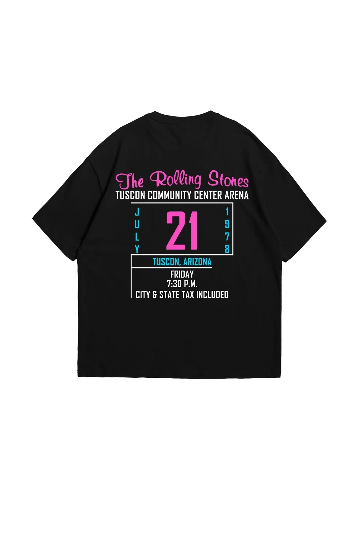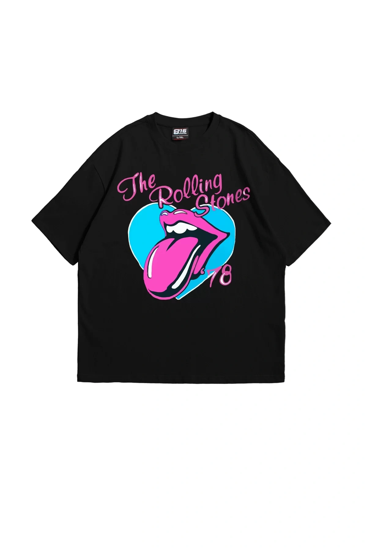 Rolling Stones Baskılı 24/1 Baskılı Oversize Unisex Siyah Tshirt