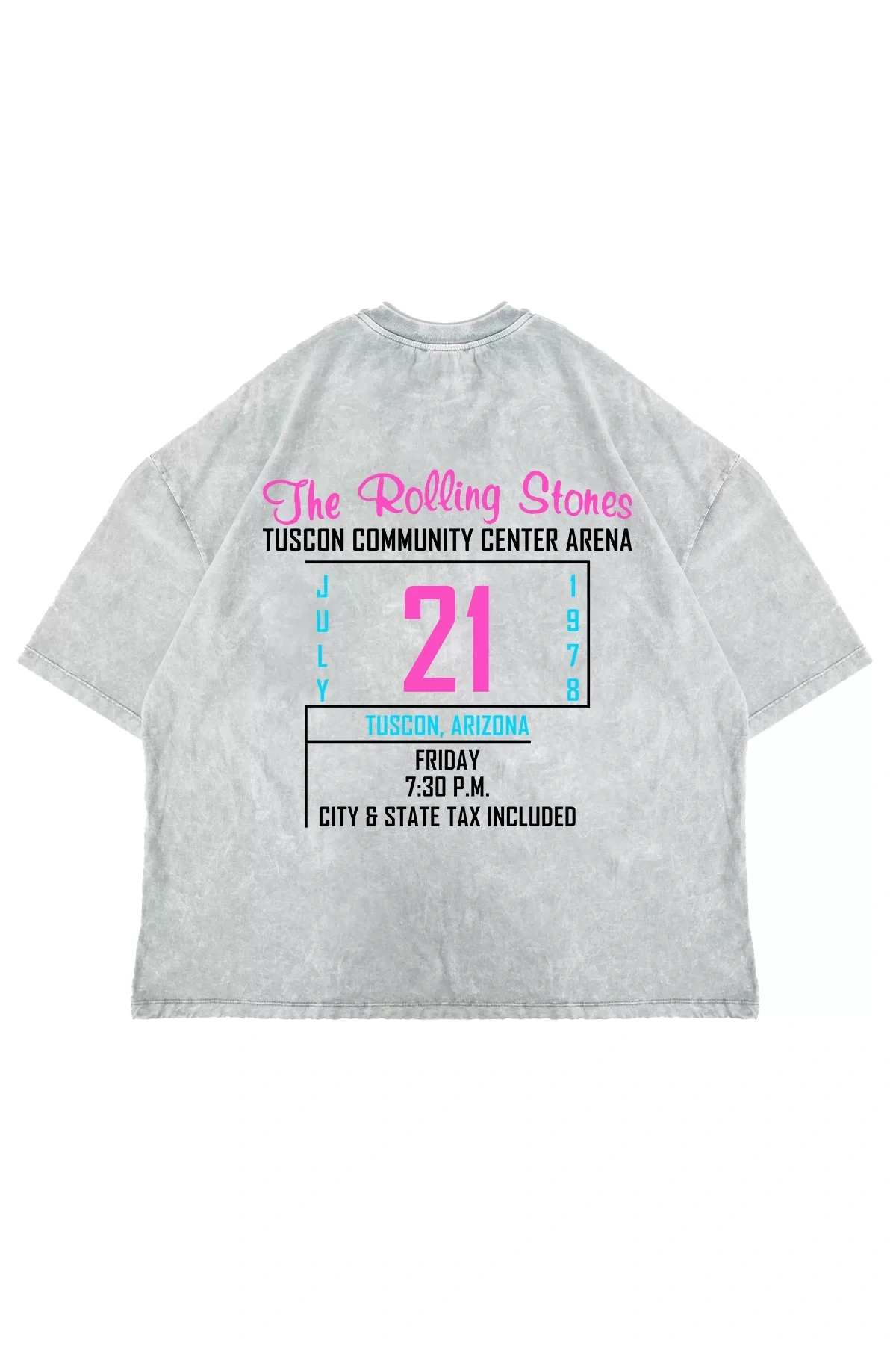 Rolling Stones Baskılı 24/1 Baskılı Oversize Unisex Yıkamalı Beyaz Tshirt