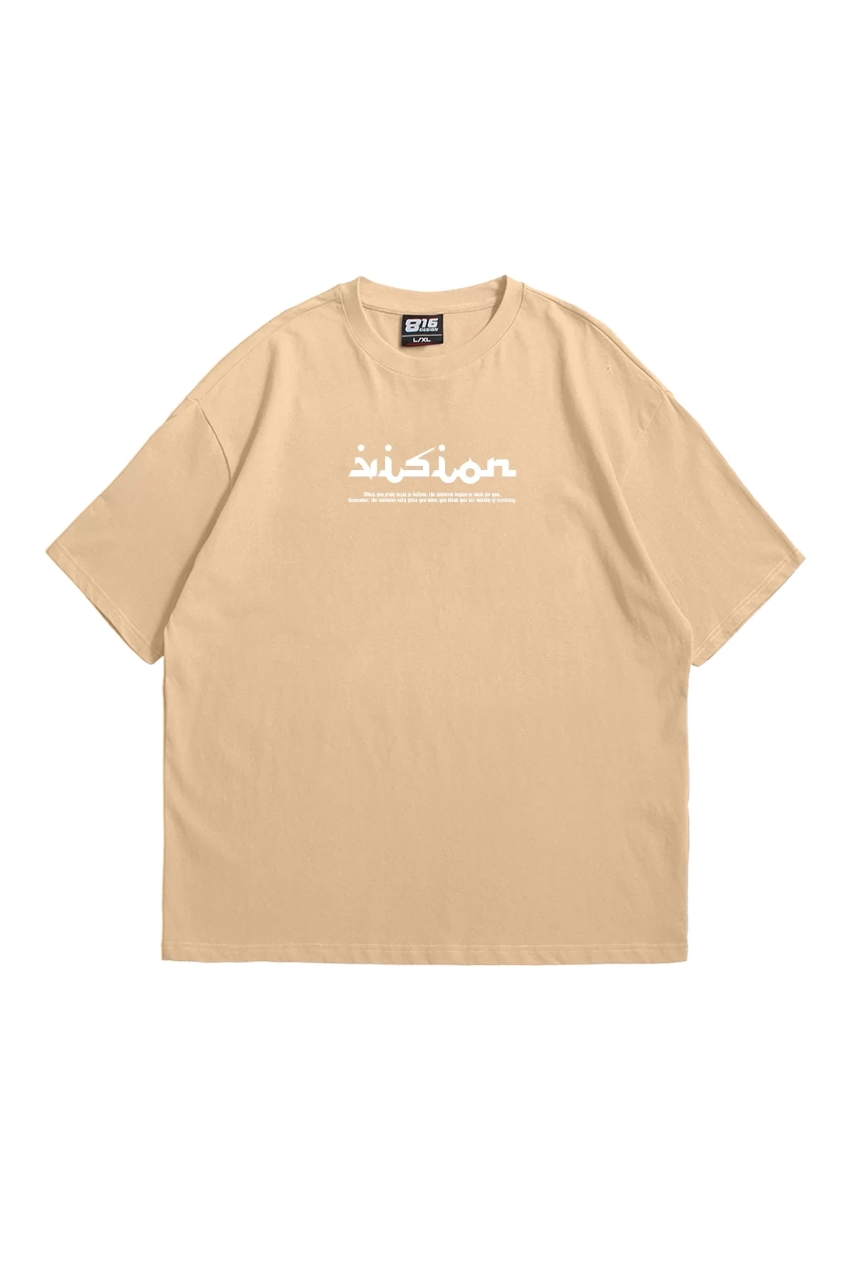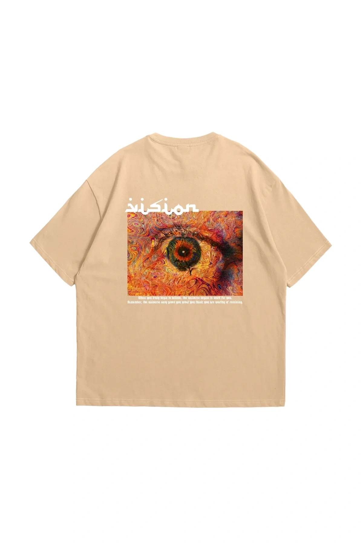 Vision Baskılı Oversize Unisex Bej Tshirt