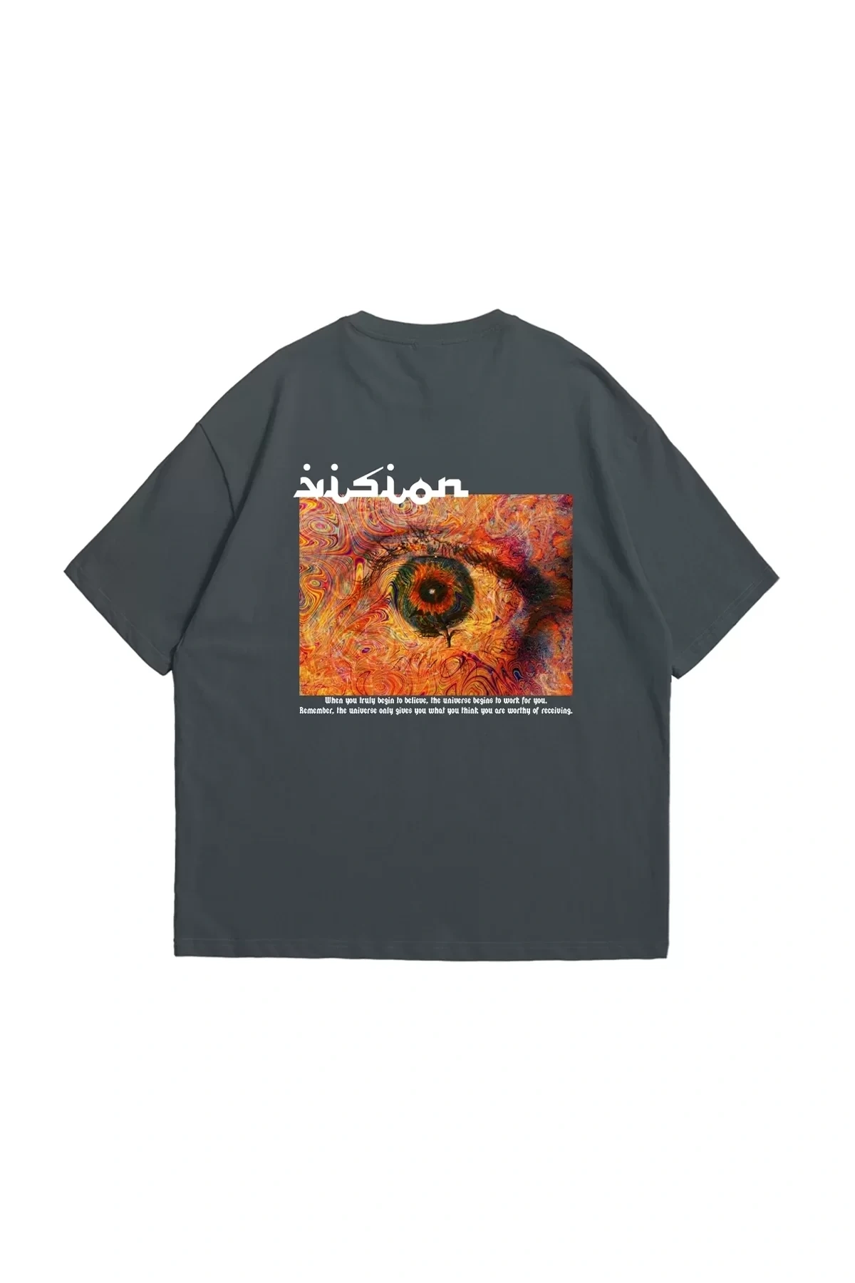 Vision Baskılı Oversize Unisex Füme Tshirt