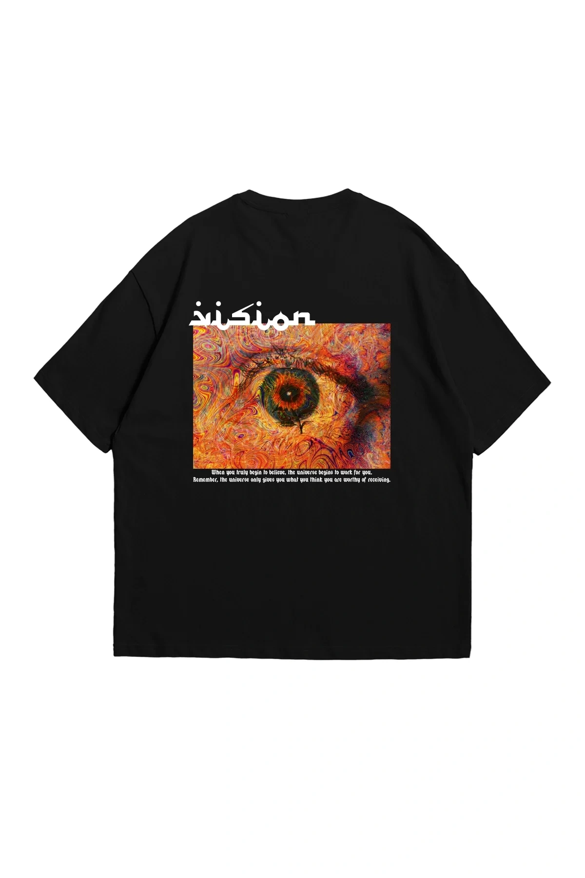 Vision Baskılı Oversize Unisex Siyah Tshirt