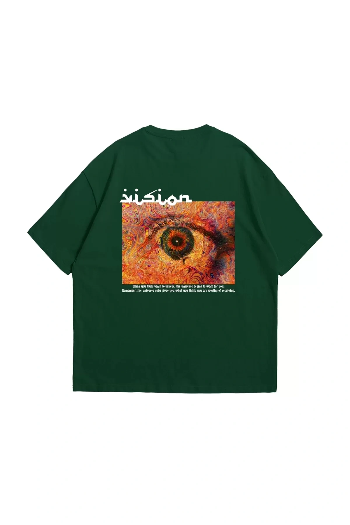 Vision Baskılı Oversize Unisex Yeşil Tshirt