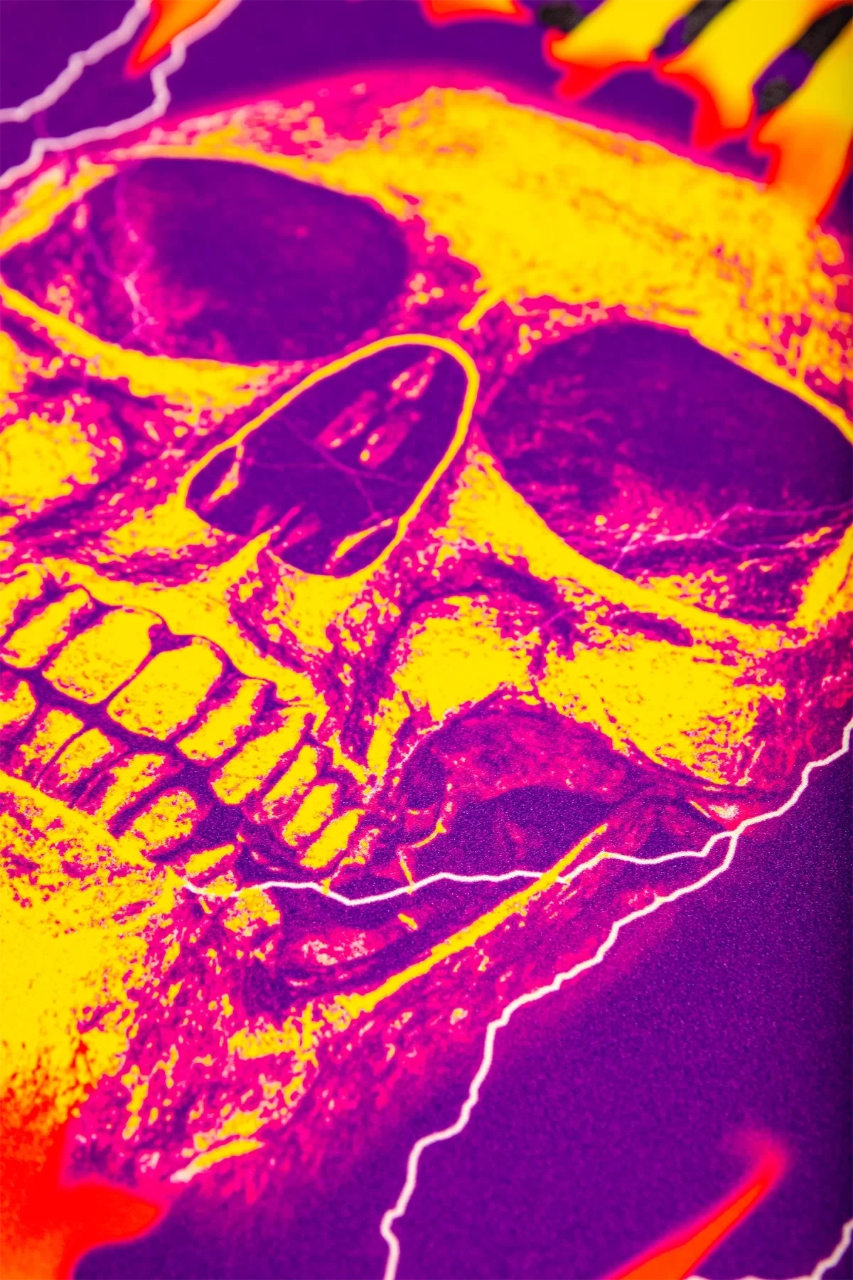 Rahat Kalıp İki İplik Flamme Skulls Baskılı Unisex Siyah Hoodie