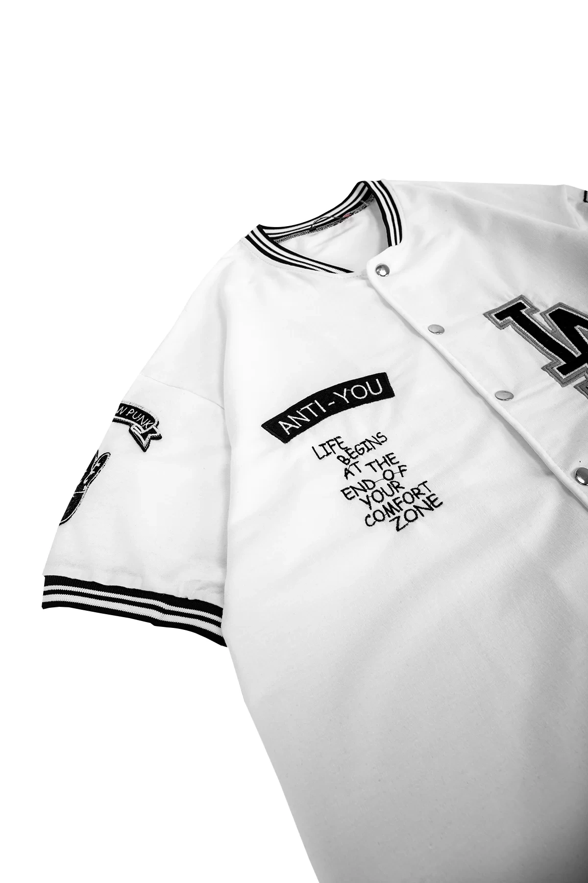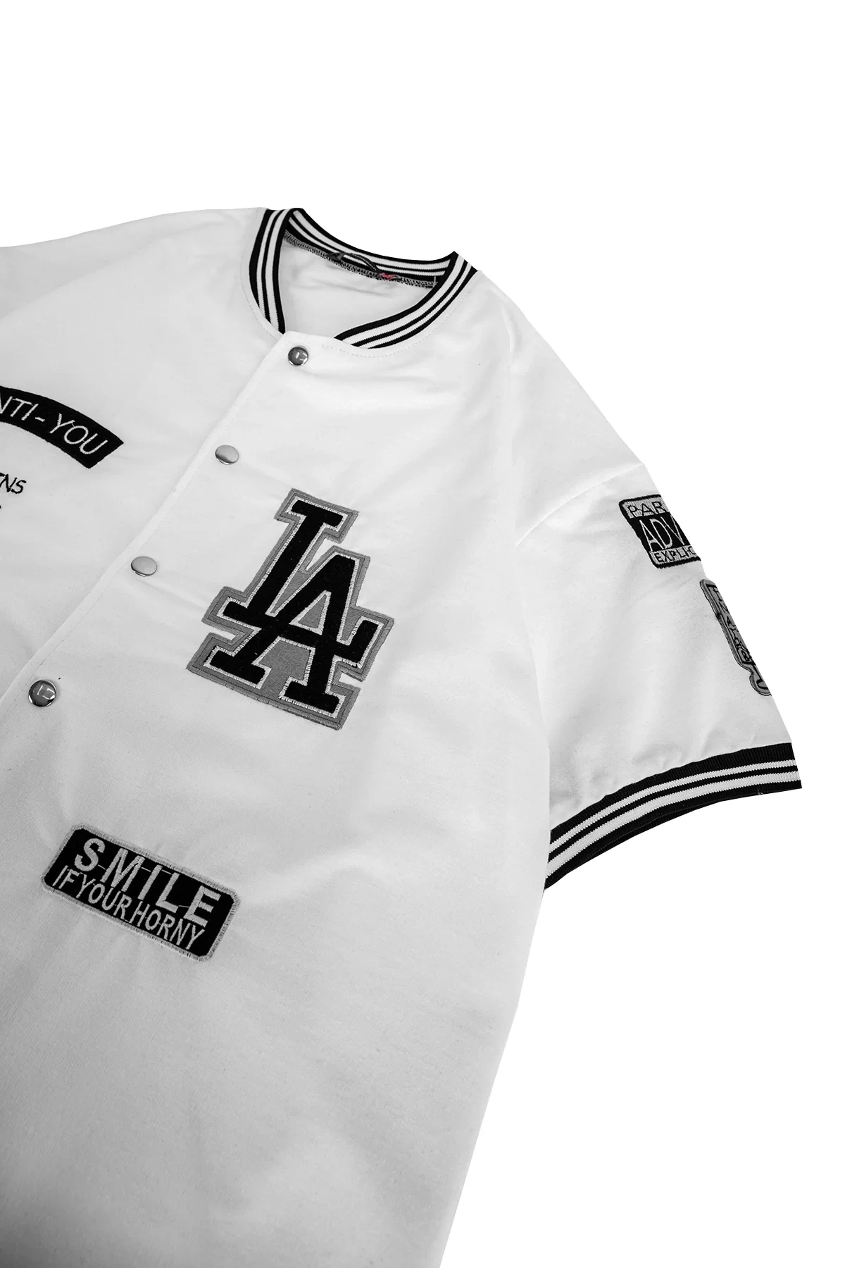 LA Patch İşlemeli Beyaz Unisex Kolej Gömlek