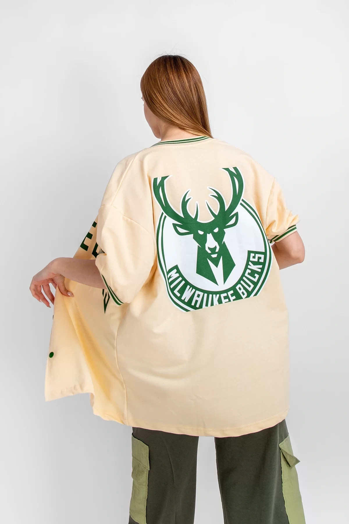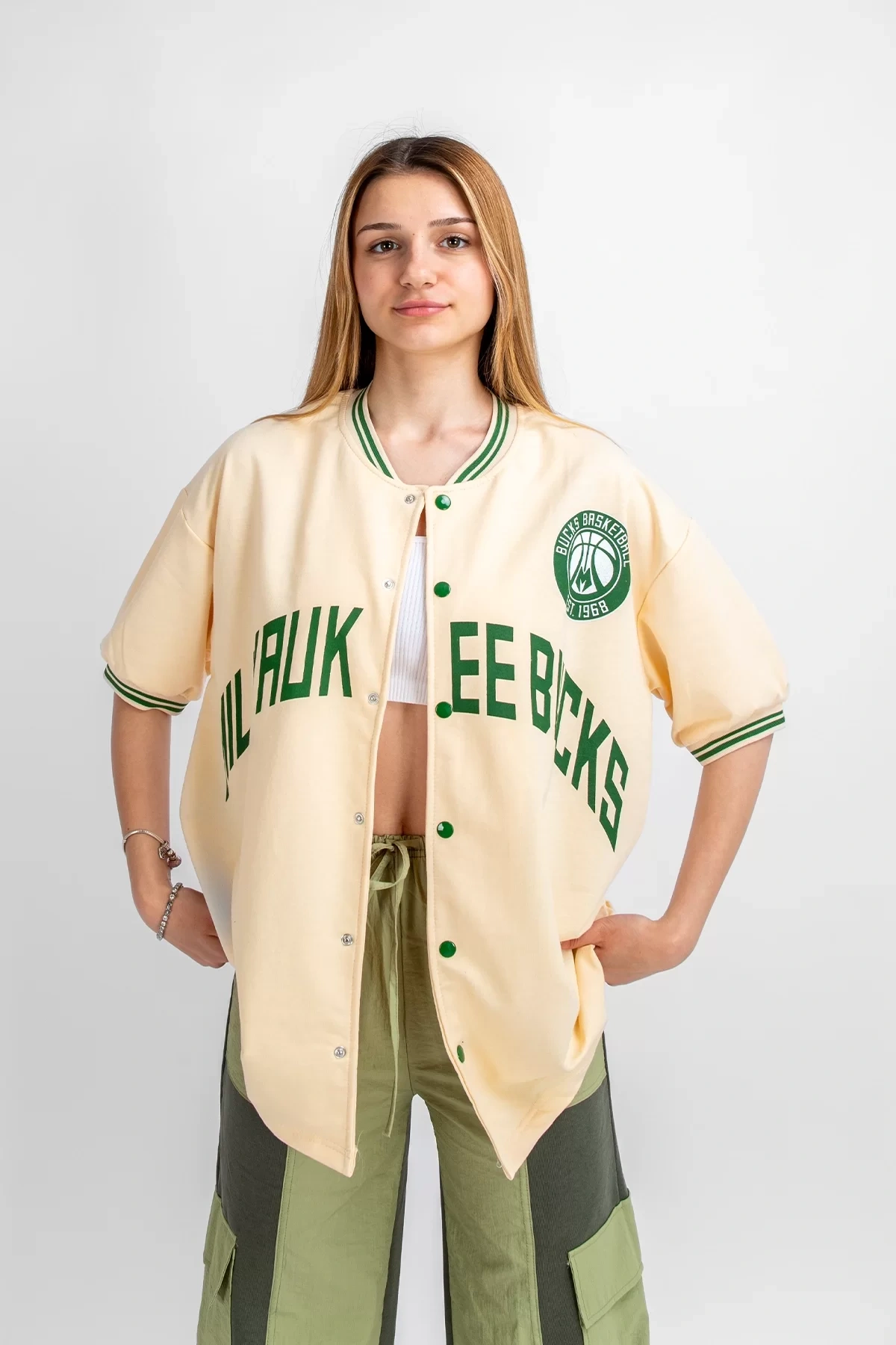 MB Sırt Baskılı Krem Rengi Unisex Kolej Gömlek